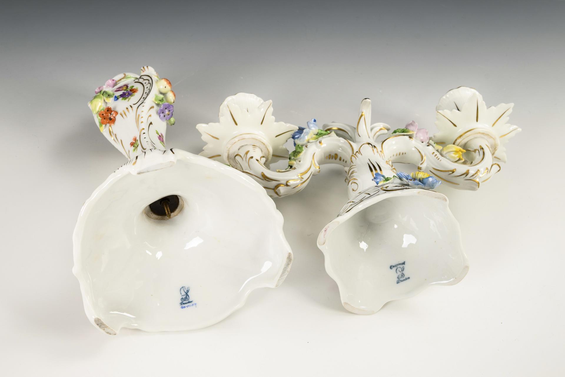 2 Leuchter mit Blütenbelag. Schierholz.