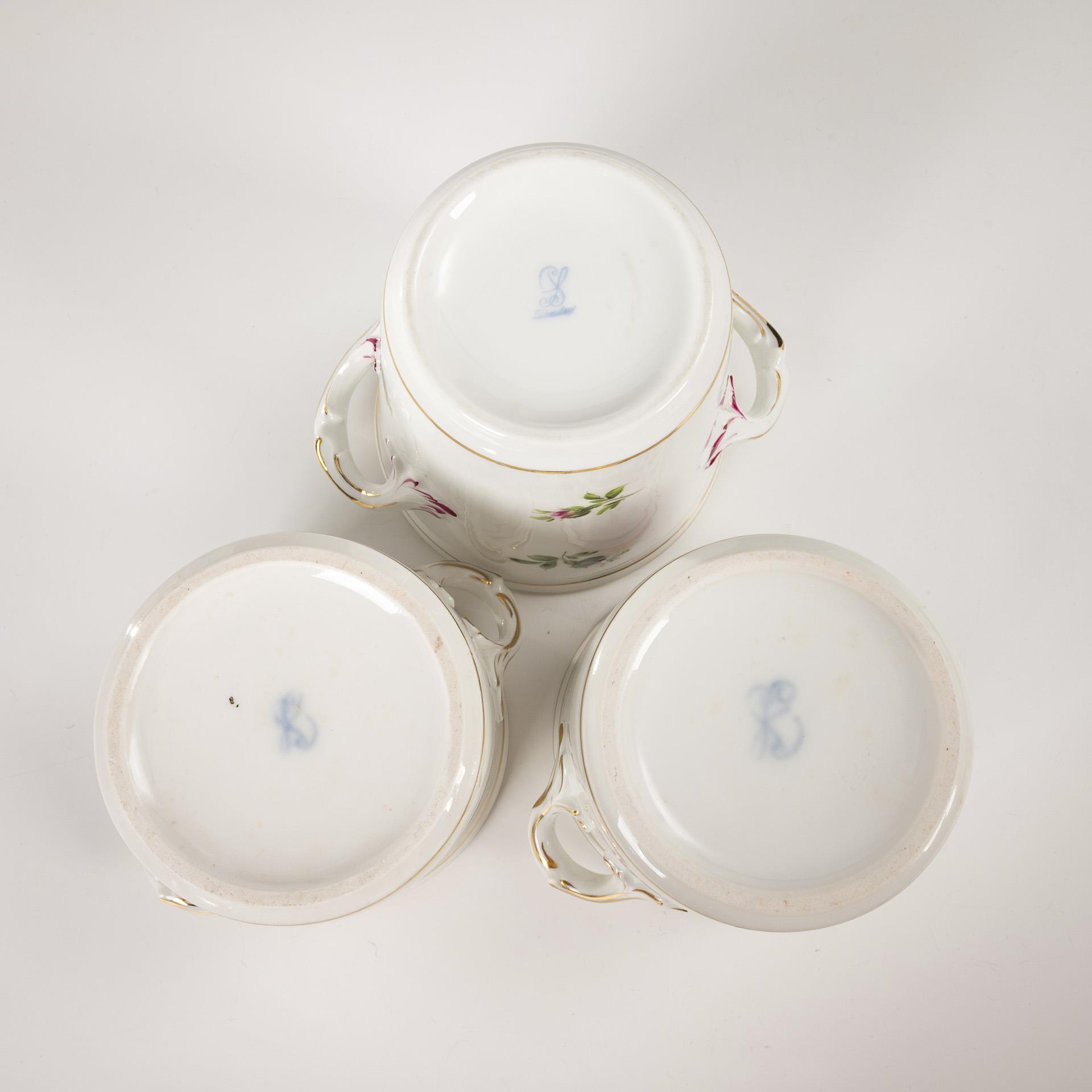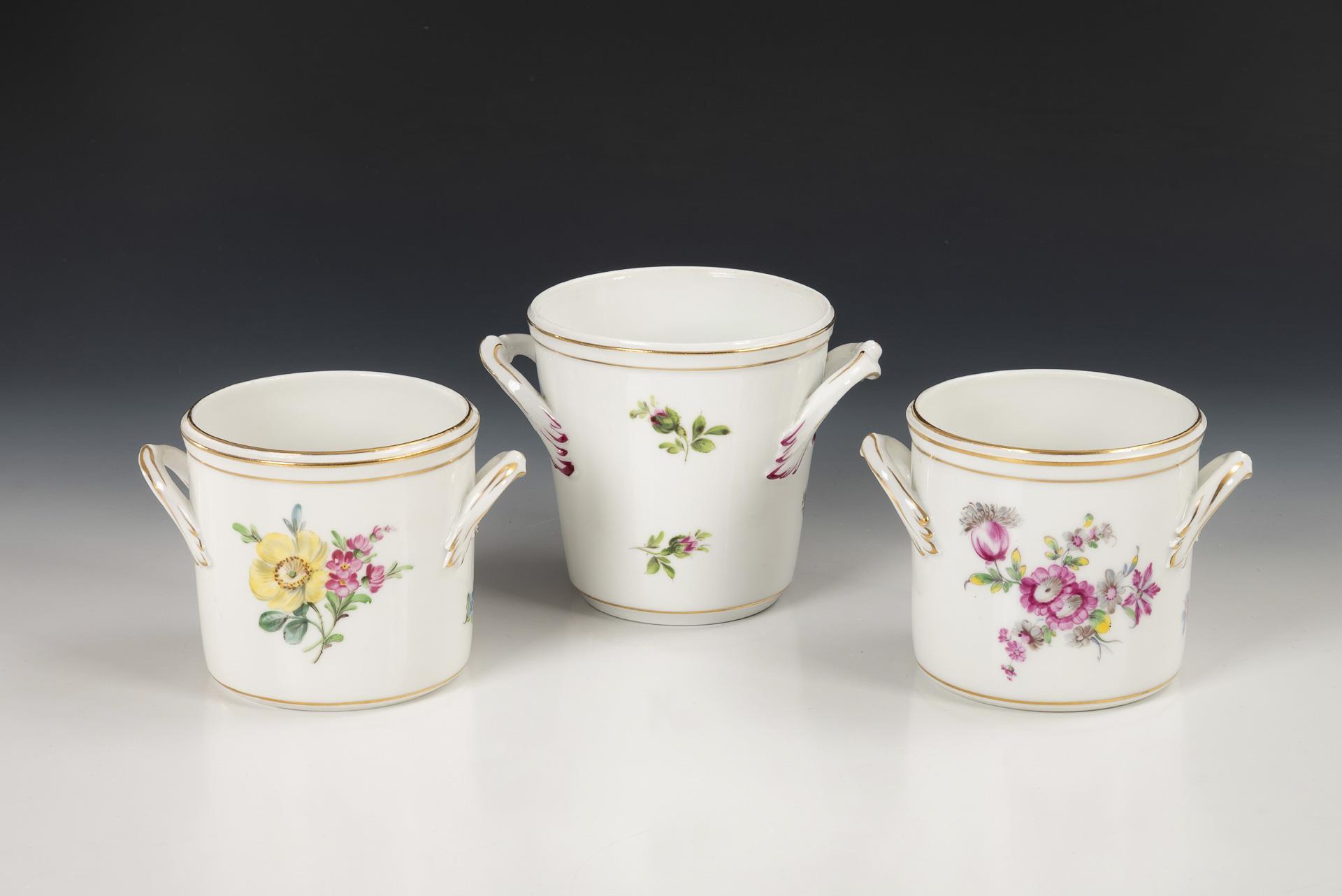 2+1 Cachepots mit Blumenmalerei. Potschappel.