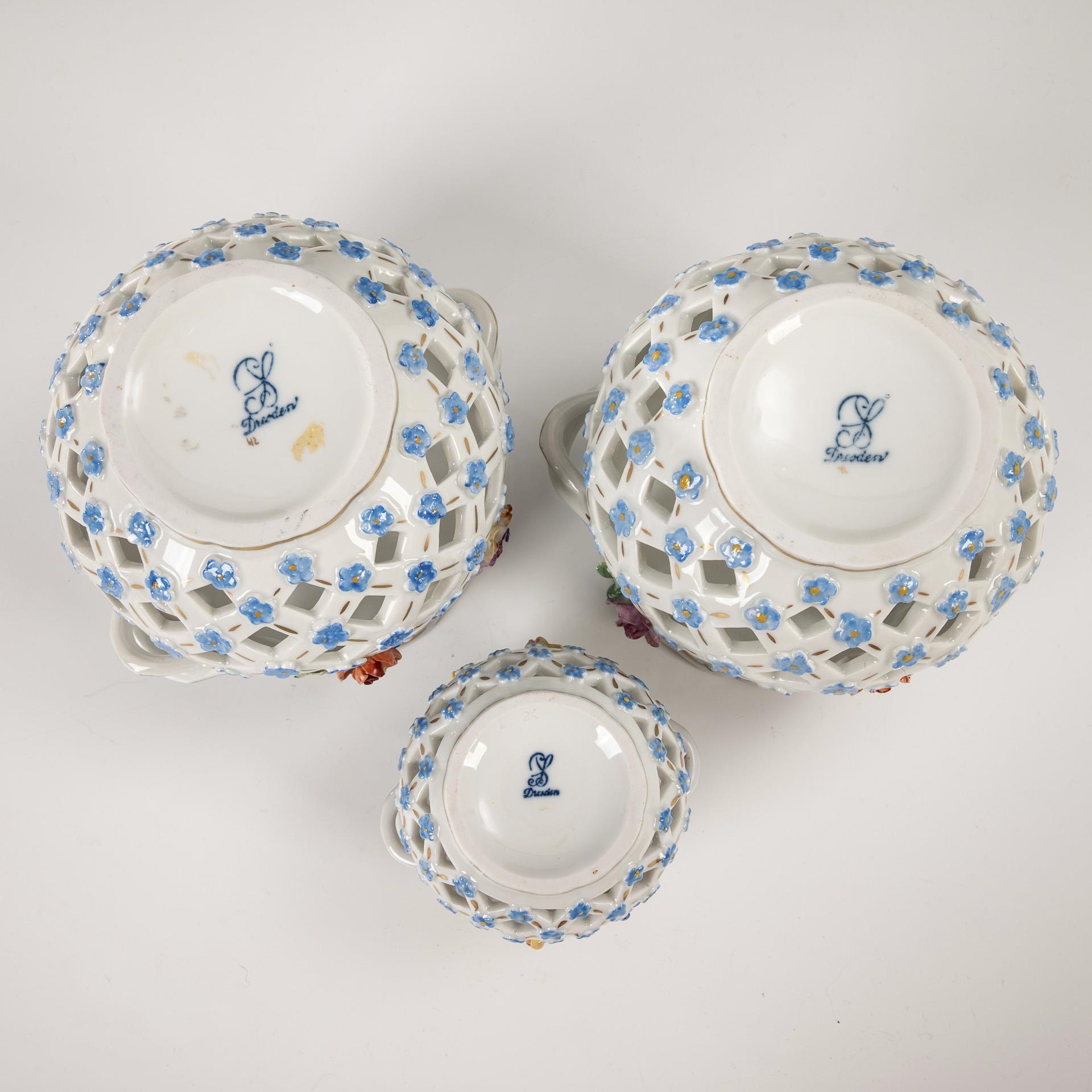 3 Cachepots mit Blütenbelag. Potschappel.