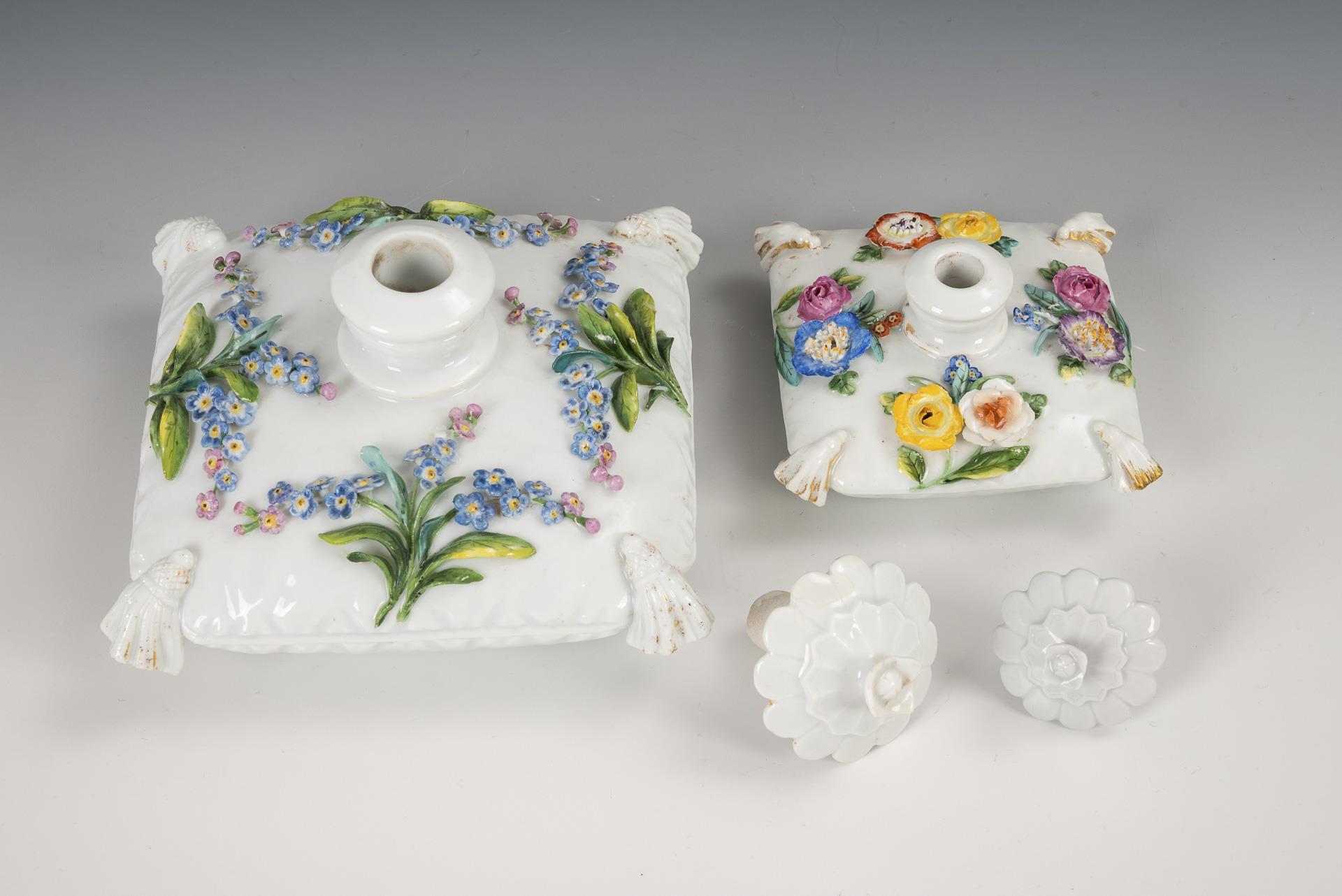 2 Polsterflakons mit Blütenbelag. Meissen.