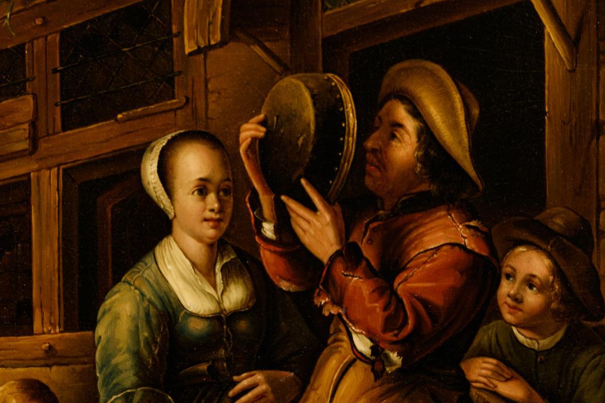 Öl/Eisenblech. Unsigniert, verso französisch als "Le maitre drouineur" bezeichnet. 1. H. 19. Jh.