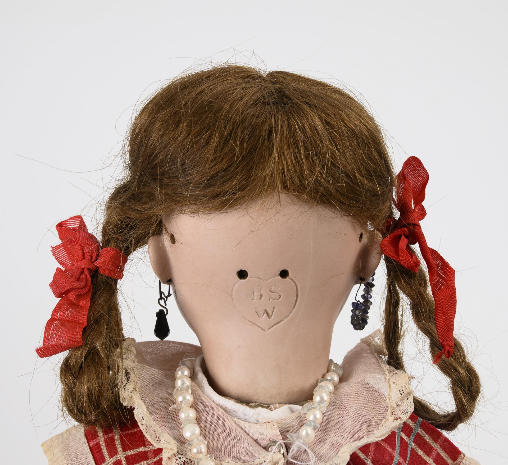 Puppenmädchen mit kariertem Kleid. Bruno Schmidt.