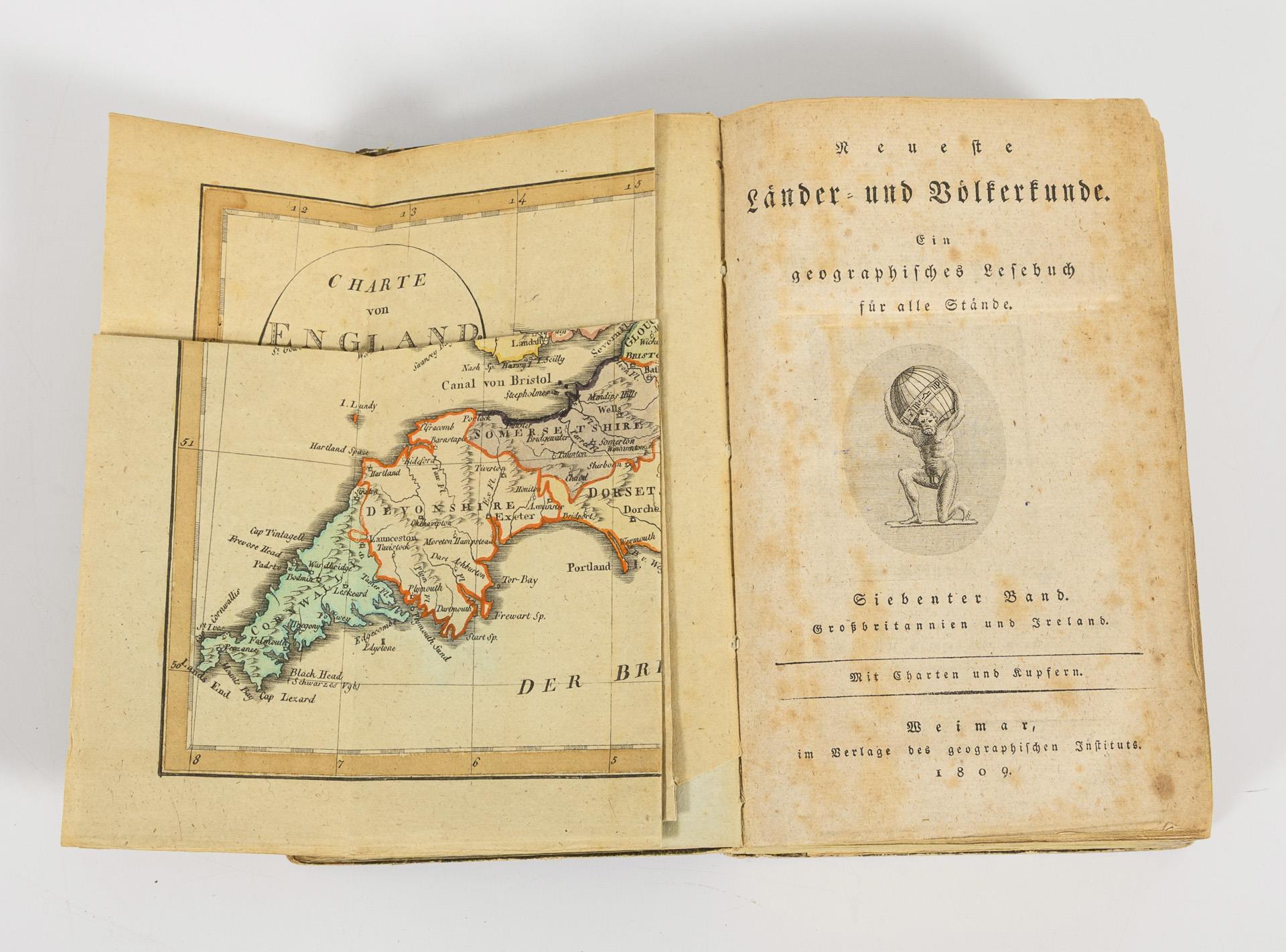 568 Seiten sowie 8 Landkarten (teils farbig koloriert) und weiterhin 8 Tafeln mit meist bildlichen Darstellungen, im Pappeinband der Zeit. Siebenter Band der Reihe.