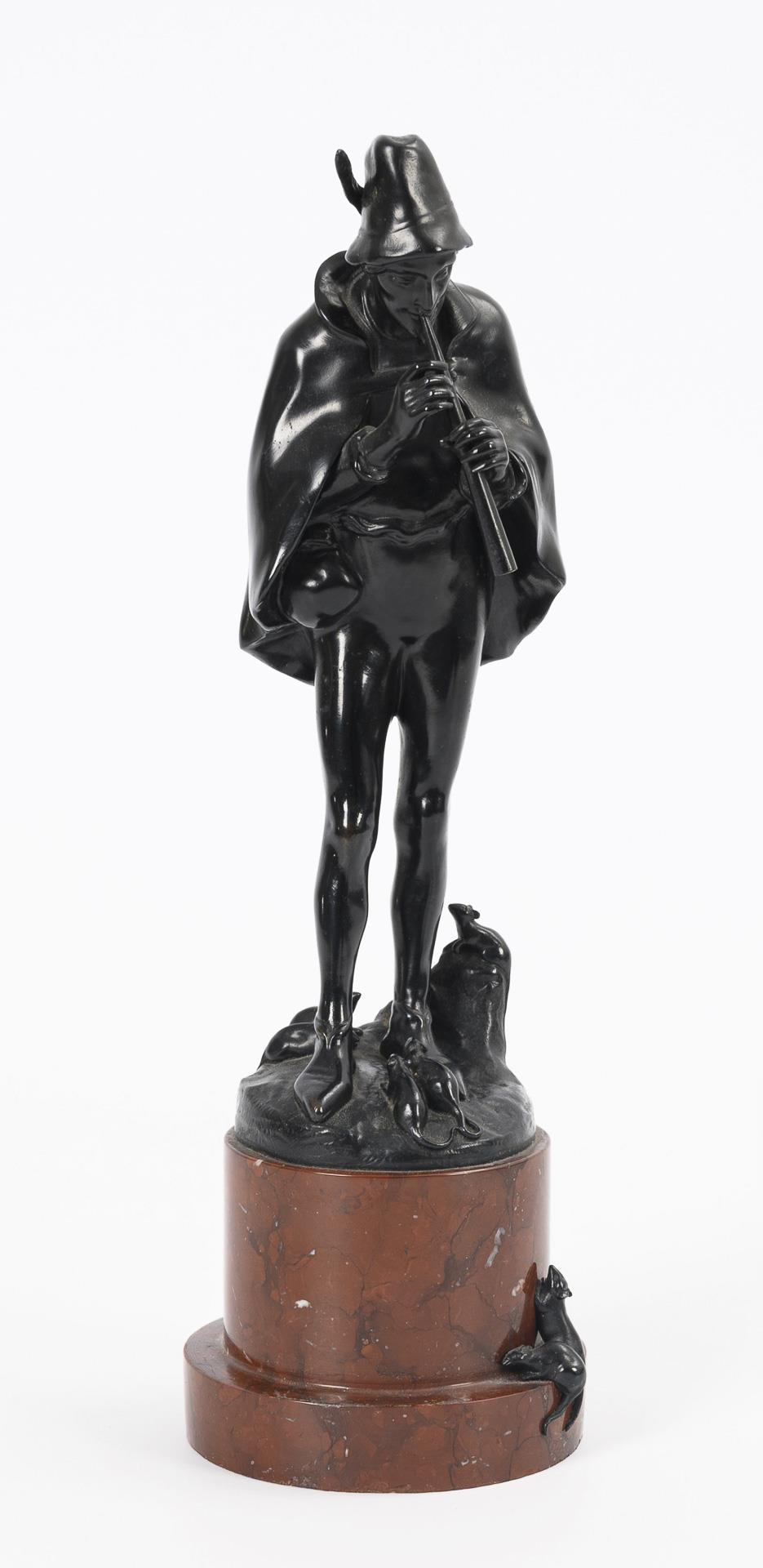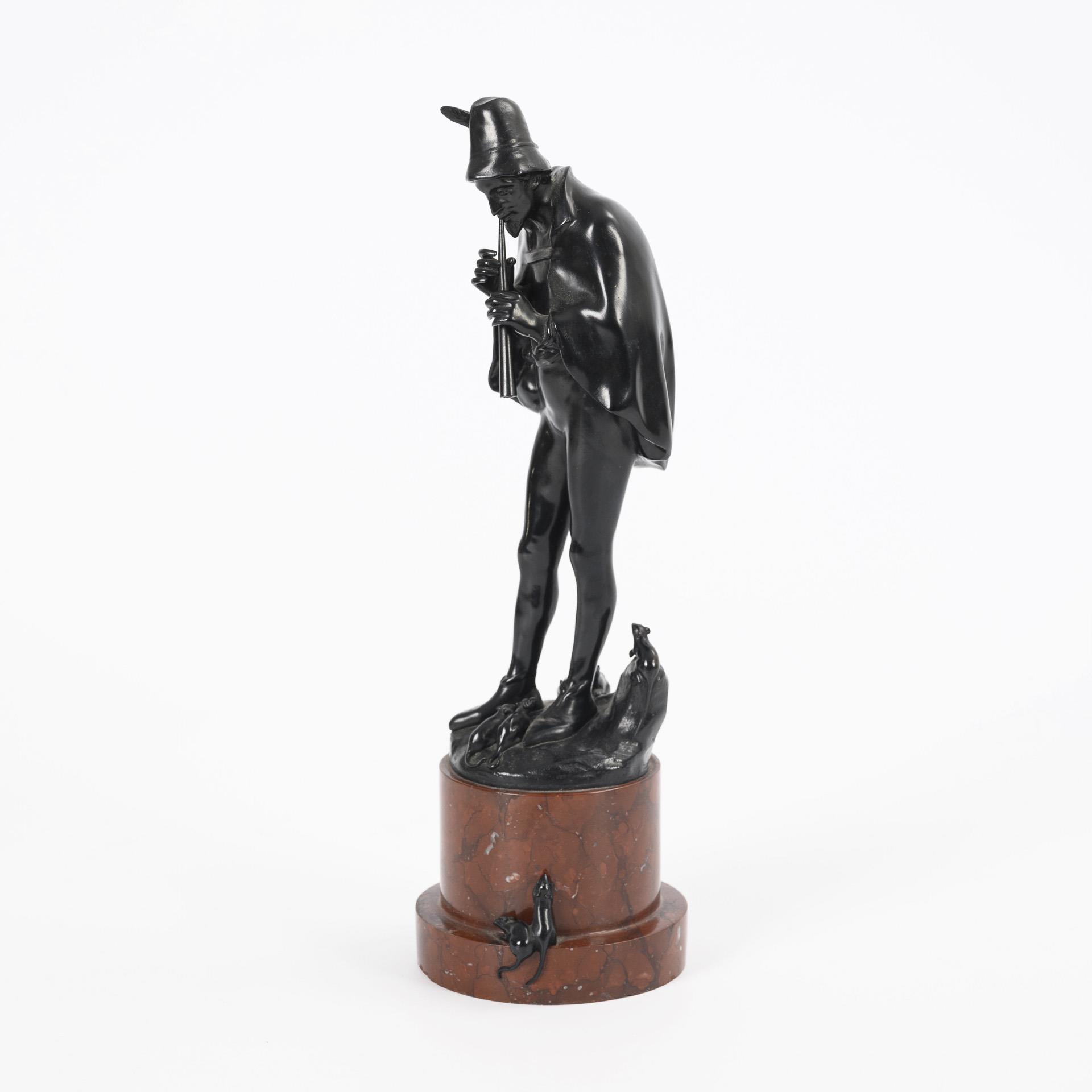 Standfigur des Flötenspielers beim Anlocken der Ratten. Patina minimal fleckig.