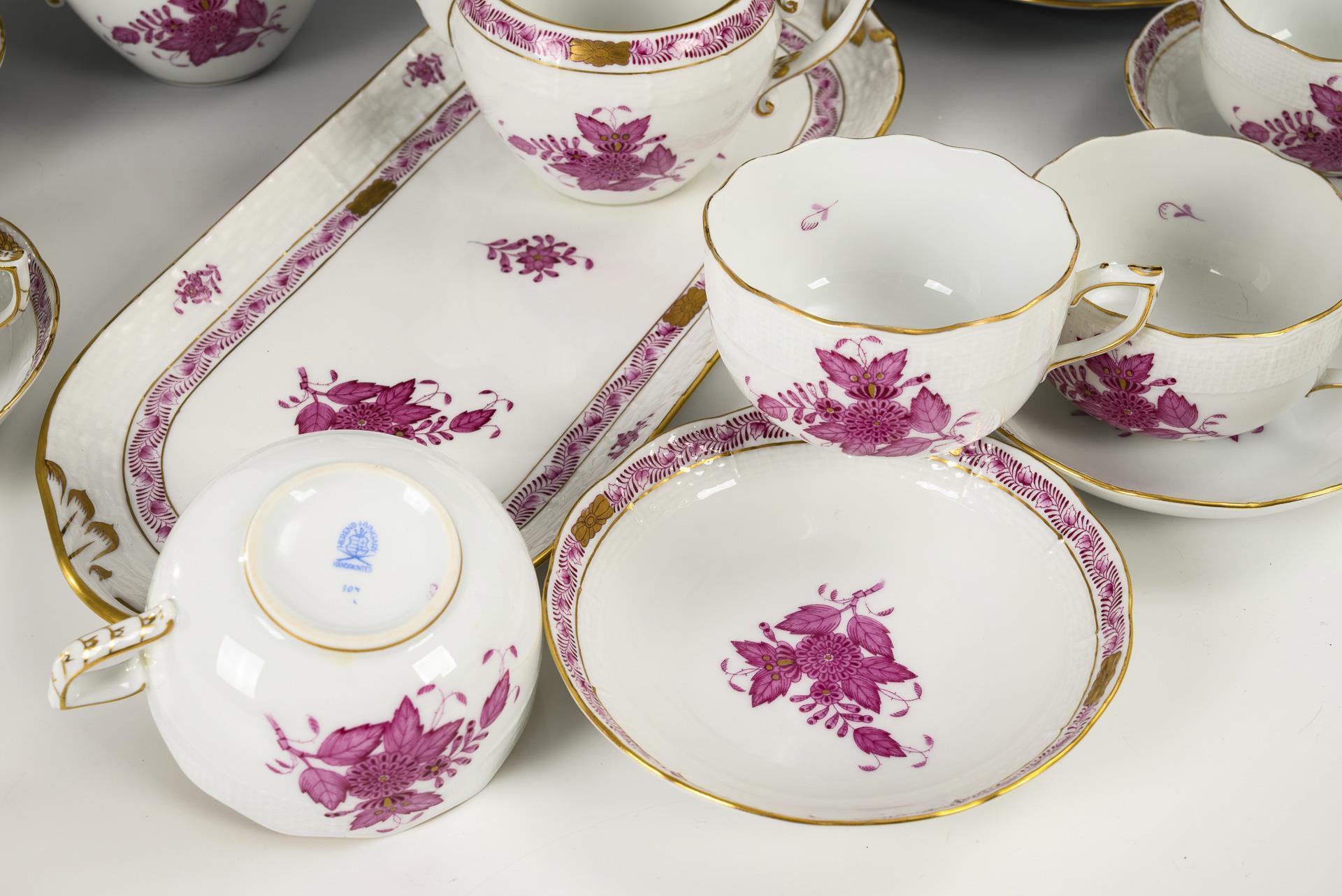21 Teile. Form "Altozier". Kaffeekanne (H 25,5 cm), Milchkännchen, Zuckerdose, 6 Kaffeetassen, 6 Untertassen, 6 Kuchenteller und 1 ovales Tablett (L 36,5 cm).