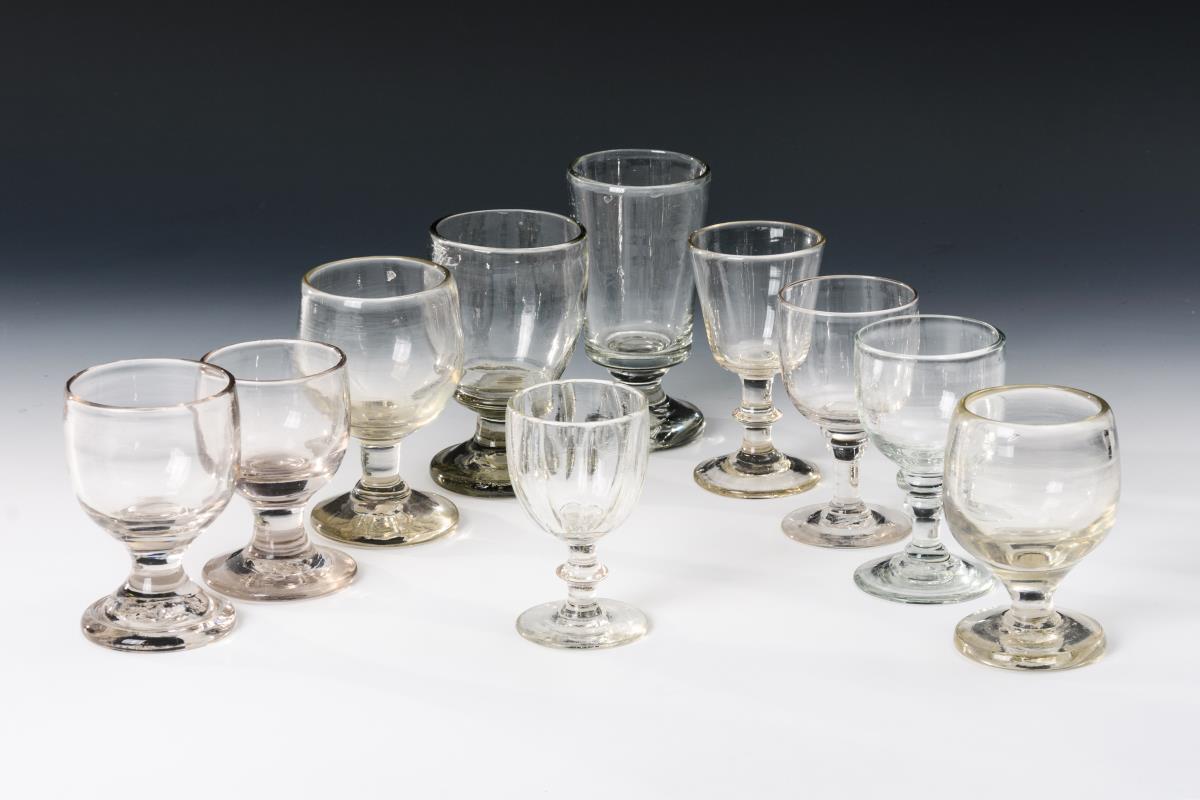 10 verschiedene Gläser. 1x Fuß bestoßen.