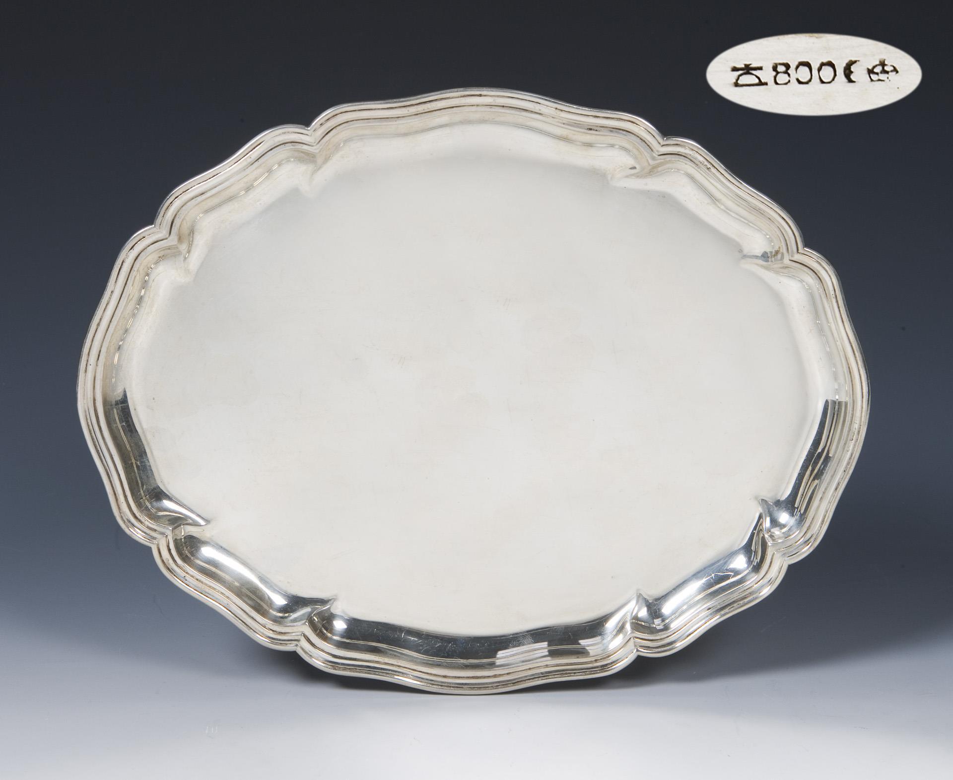 Ovale Form mit passig geschweiftem vollem Profilrand. Punzen: Halbmond und Krone, Feingehalt, Manufakturmarke.