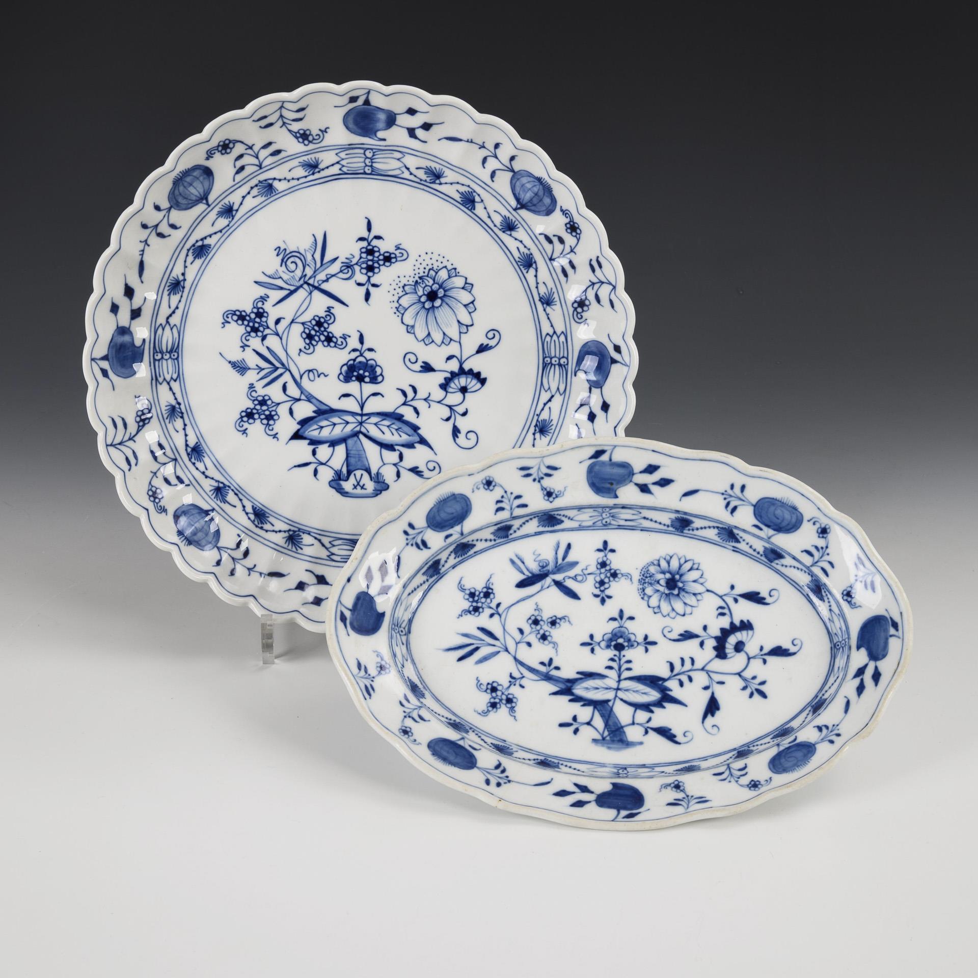 Zwiebelmuster-Fächerschale und -Ovalplatte. Meissen.