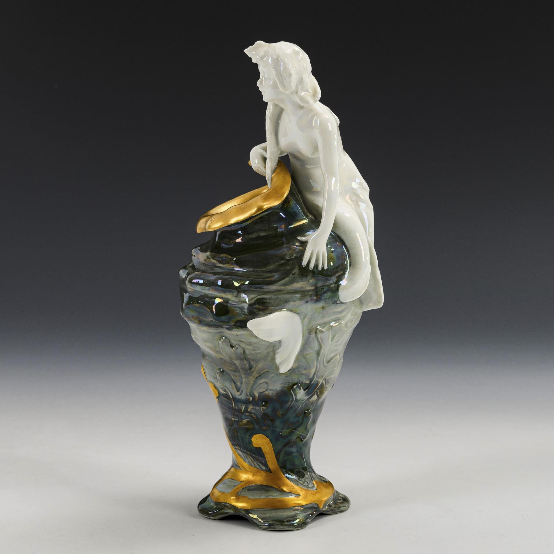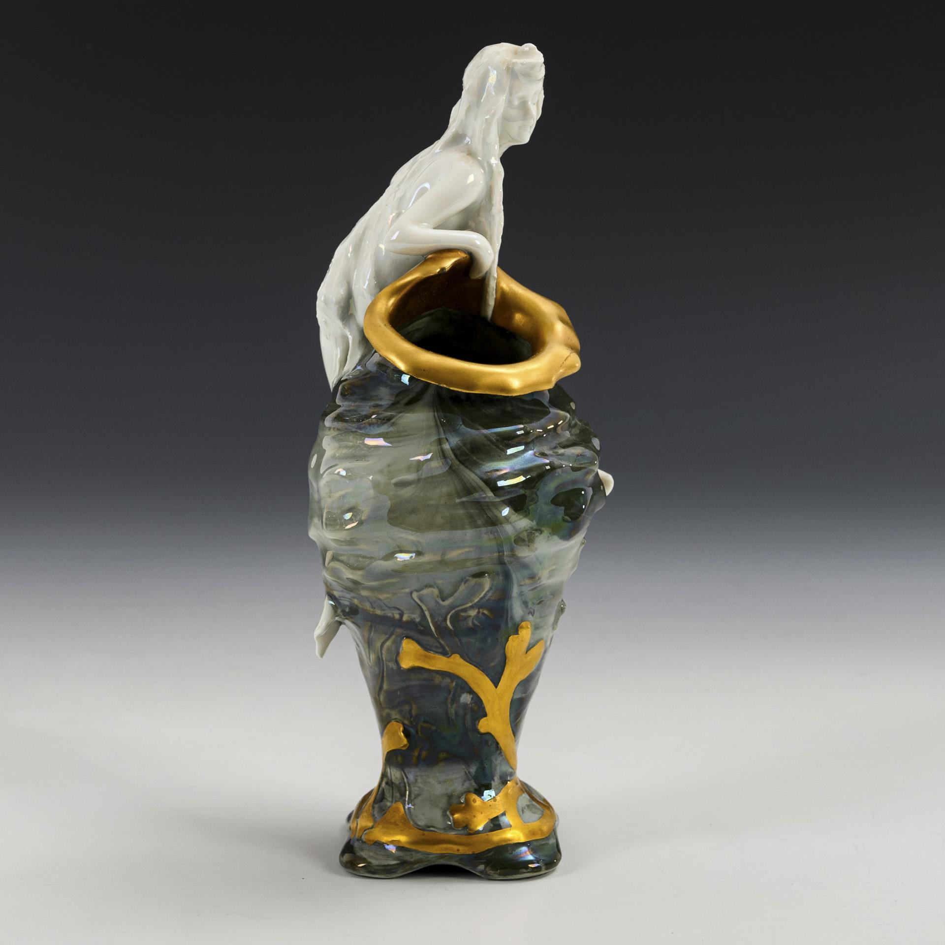 Jugendstil-Muschelvase mit Nymphe. Rosenthal.