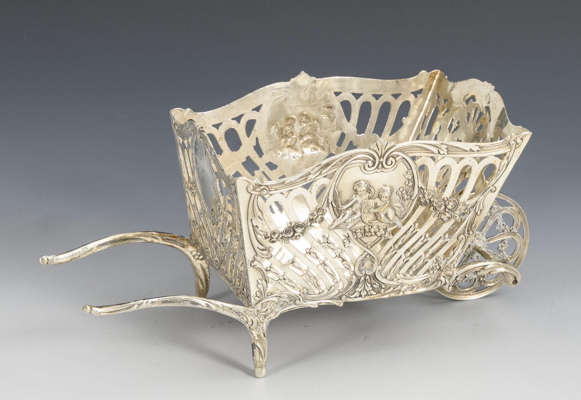 Reich reliefierte, durchbrochen gearbeitete Karre mit Putten und Girlanden.