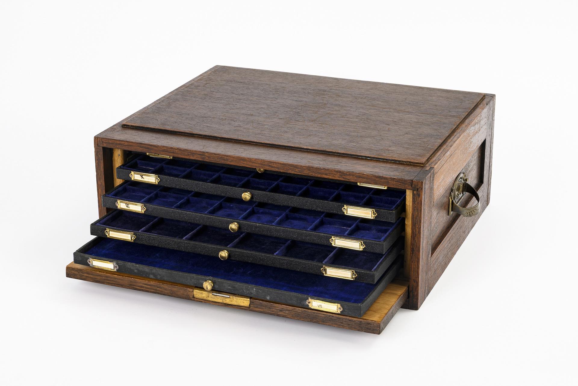 Sammlungsschränkchen für Münzsammler. Theodor Schröter, Leipzig-Connewitz.