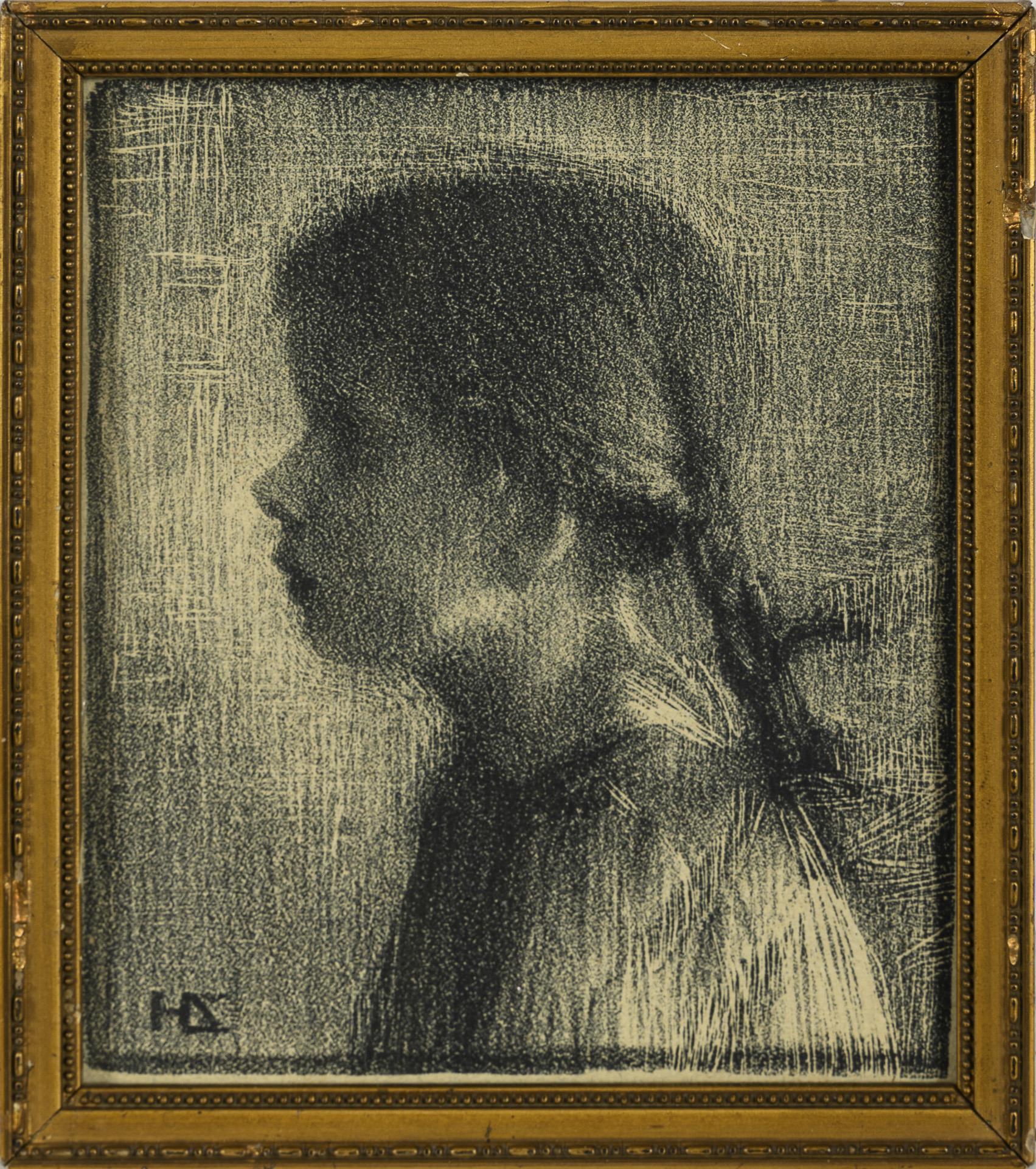 14,5 x 12,5 cm. Gerahmt & hinter Glas : 16 x 14 cm.