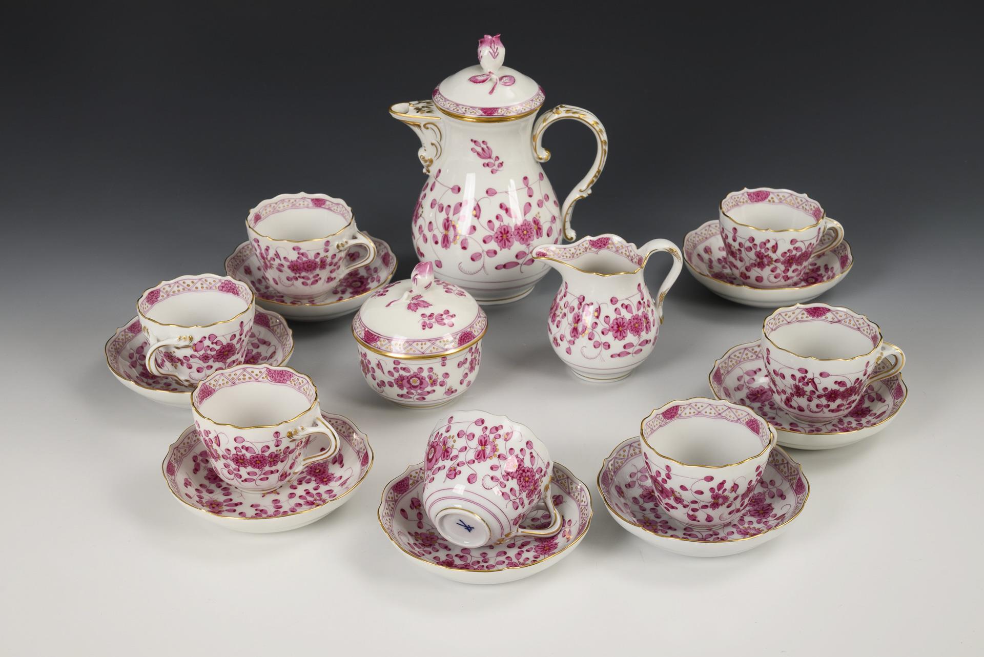 17 Teile. Form "Neuer Ausschnitt". Mokkakanne (H 16,5 cm), Milchkännchen, Zuckerdose, 7 Mokkatassen und 7 Untertassen.