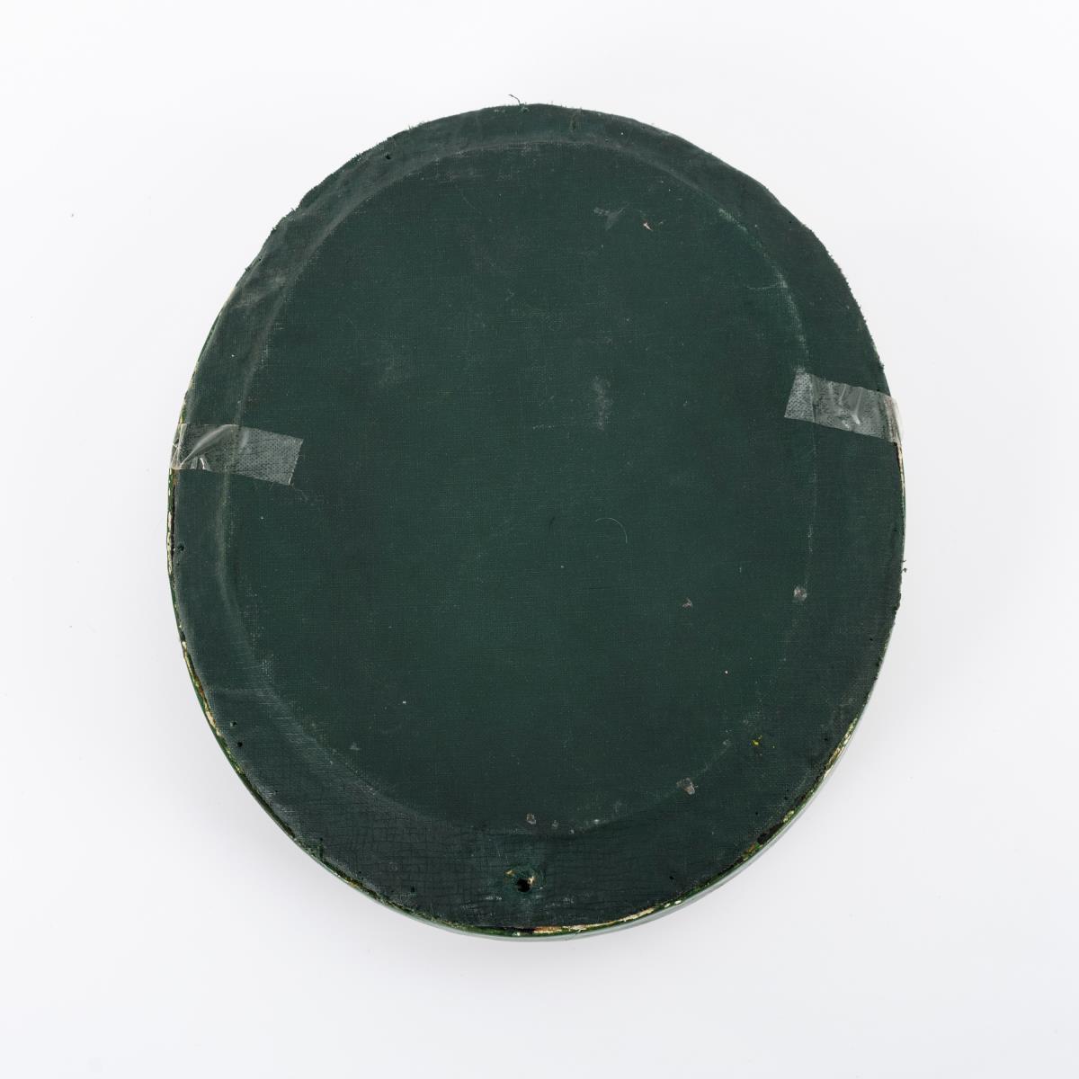 Hüftbildnis im Profil einer jungen Frau mit Blumen in der aufwändigen Frisur. Verglaster Originalrahmen. Bruchstelle am Hals retuschiert, Ovalrahmen überfasst.