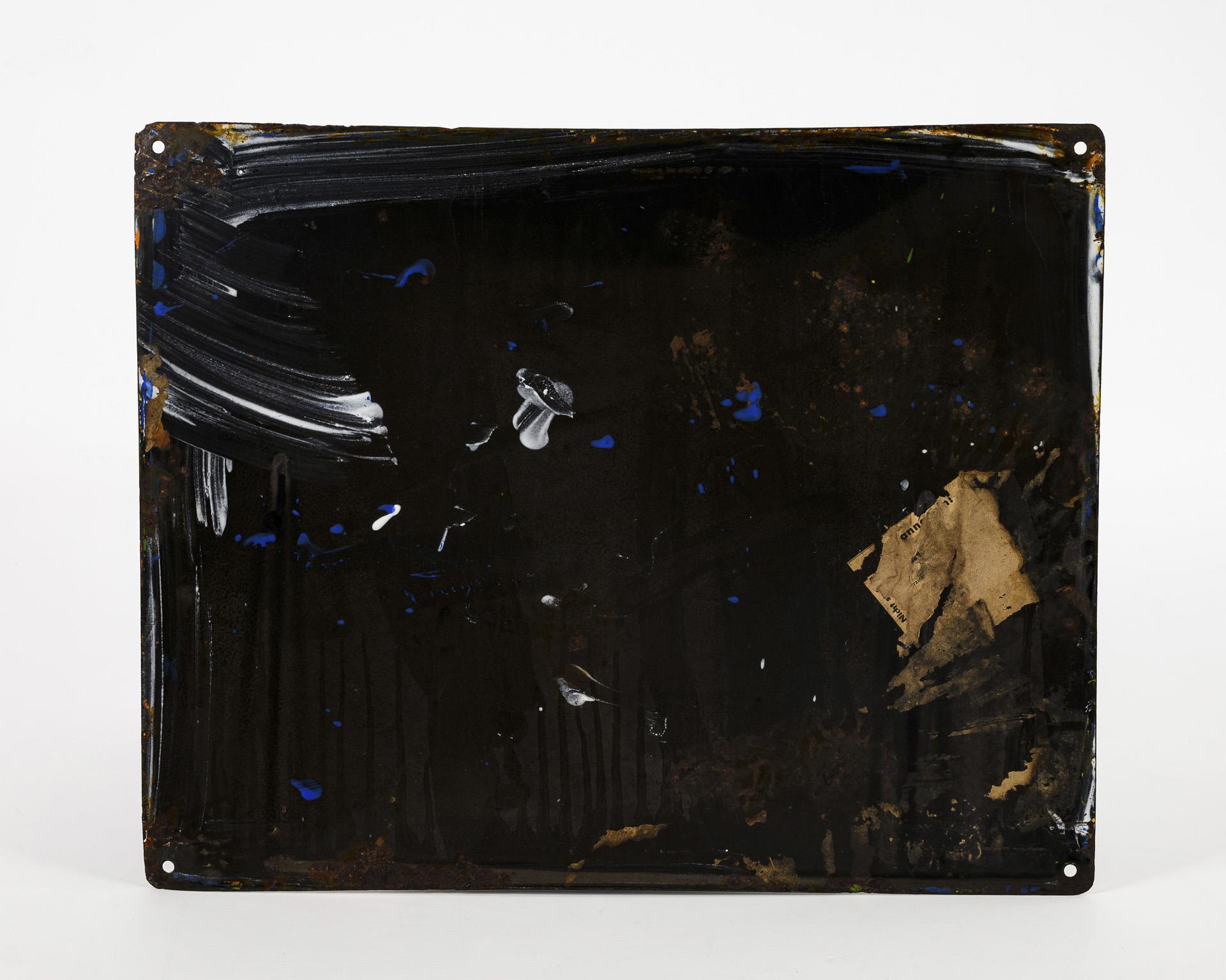 Eisenblech bombiert, mehrfarbig emailliert, schwarzes Konteremail. 40 x 49,5 cm. 1,9 kg.