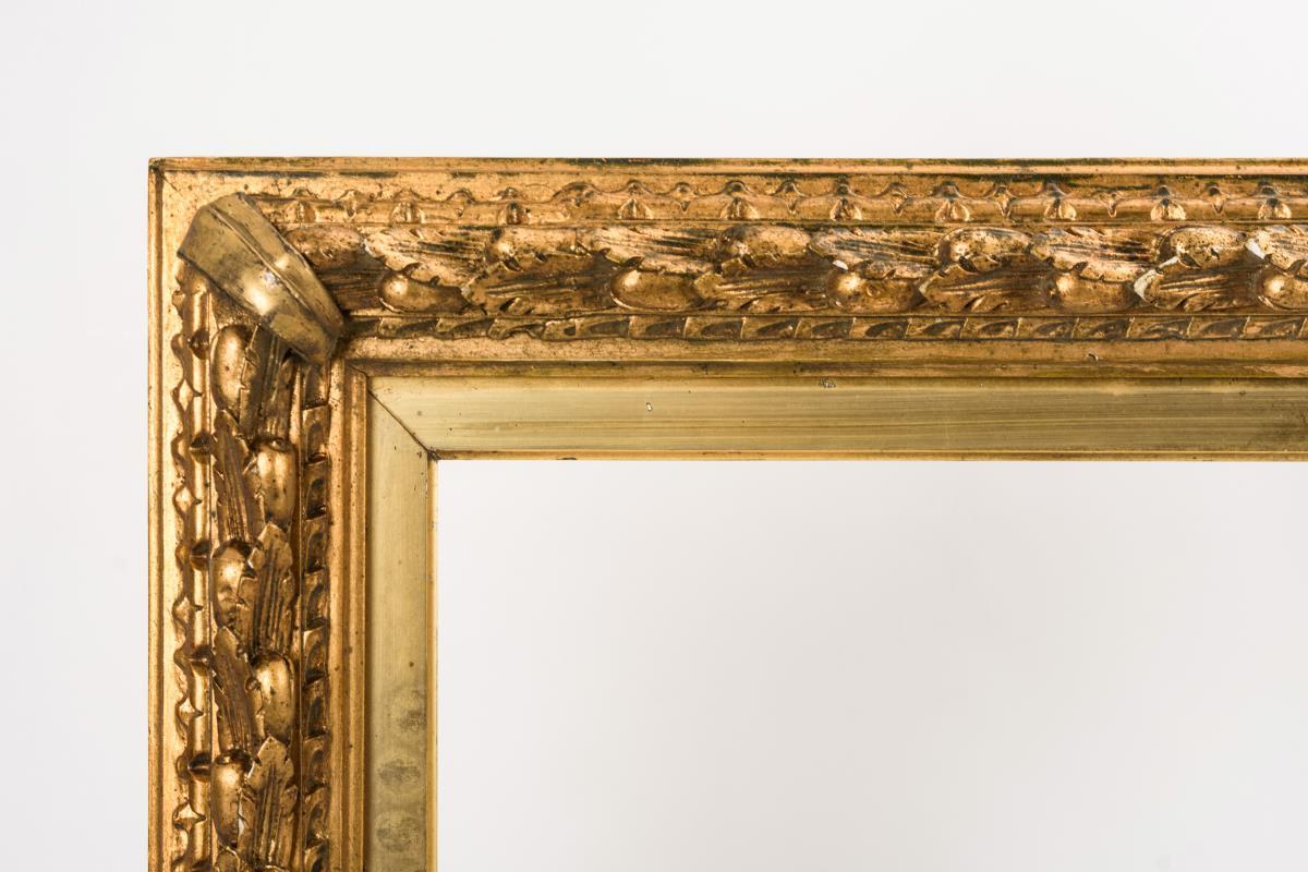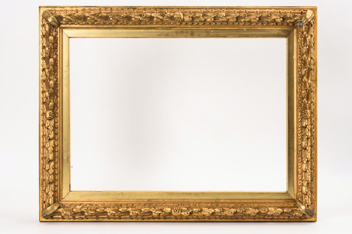 Holz, Stuck, Goldbronzierung. 89 x 69 cm, Falzmaß 70,5 x 50,5 cm, Bildmaß 69 x 49 cm.