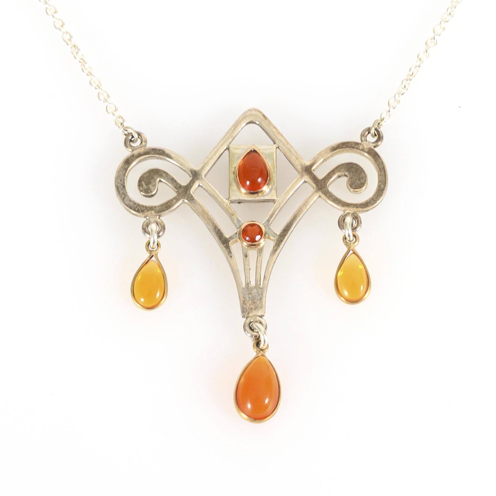Collier mit Feueropalen im Jugendstil-Design.