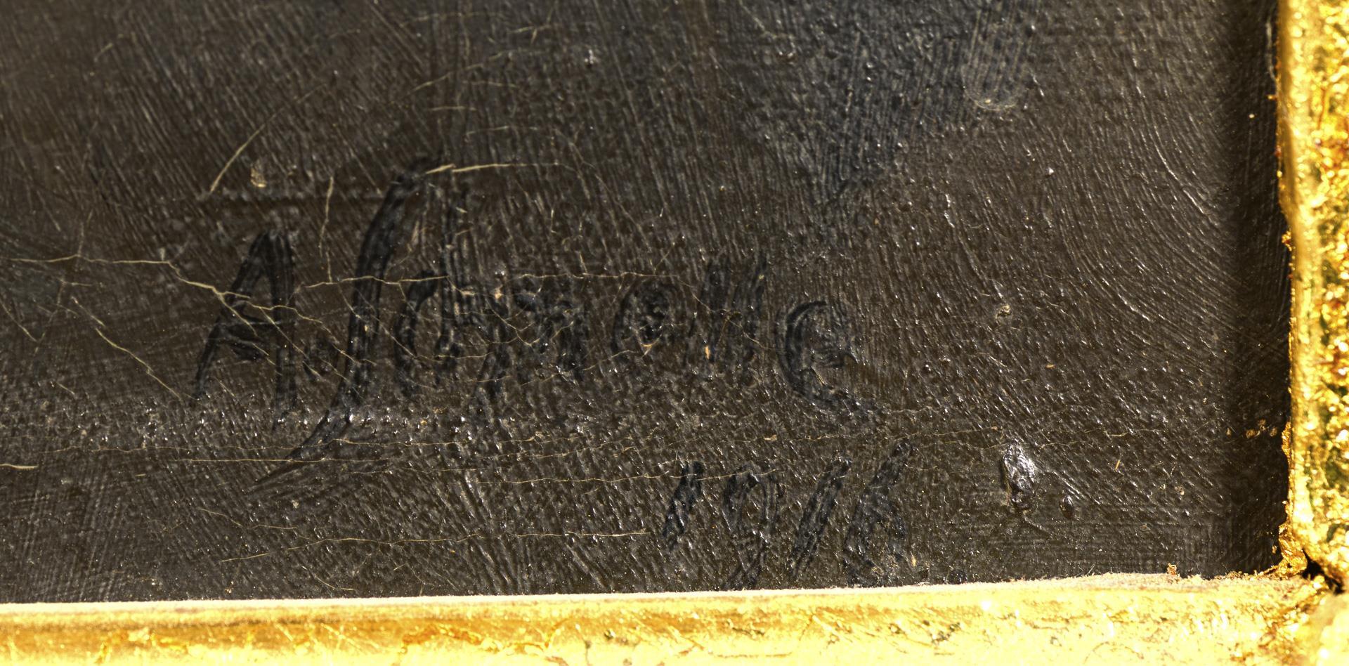 Öl/Leinwand lose auf Holz. Rechts unten signiert. 1916.