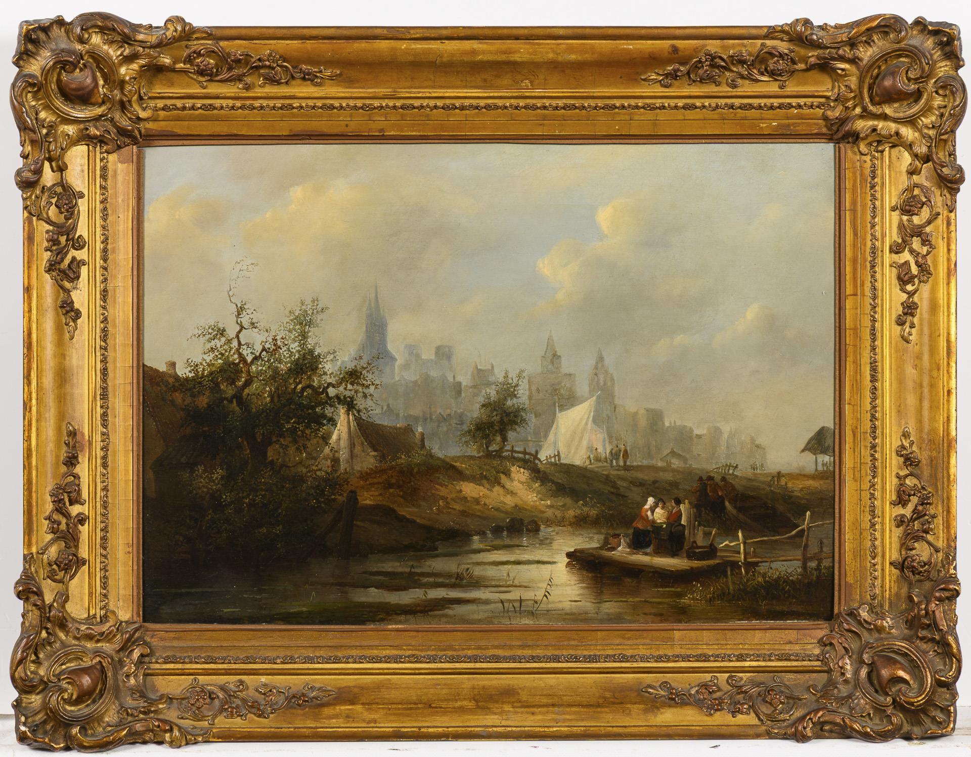 Landschaft mit Staffage vor einer Stadt