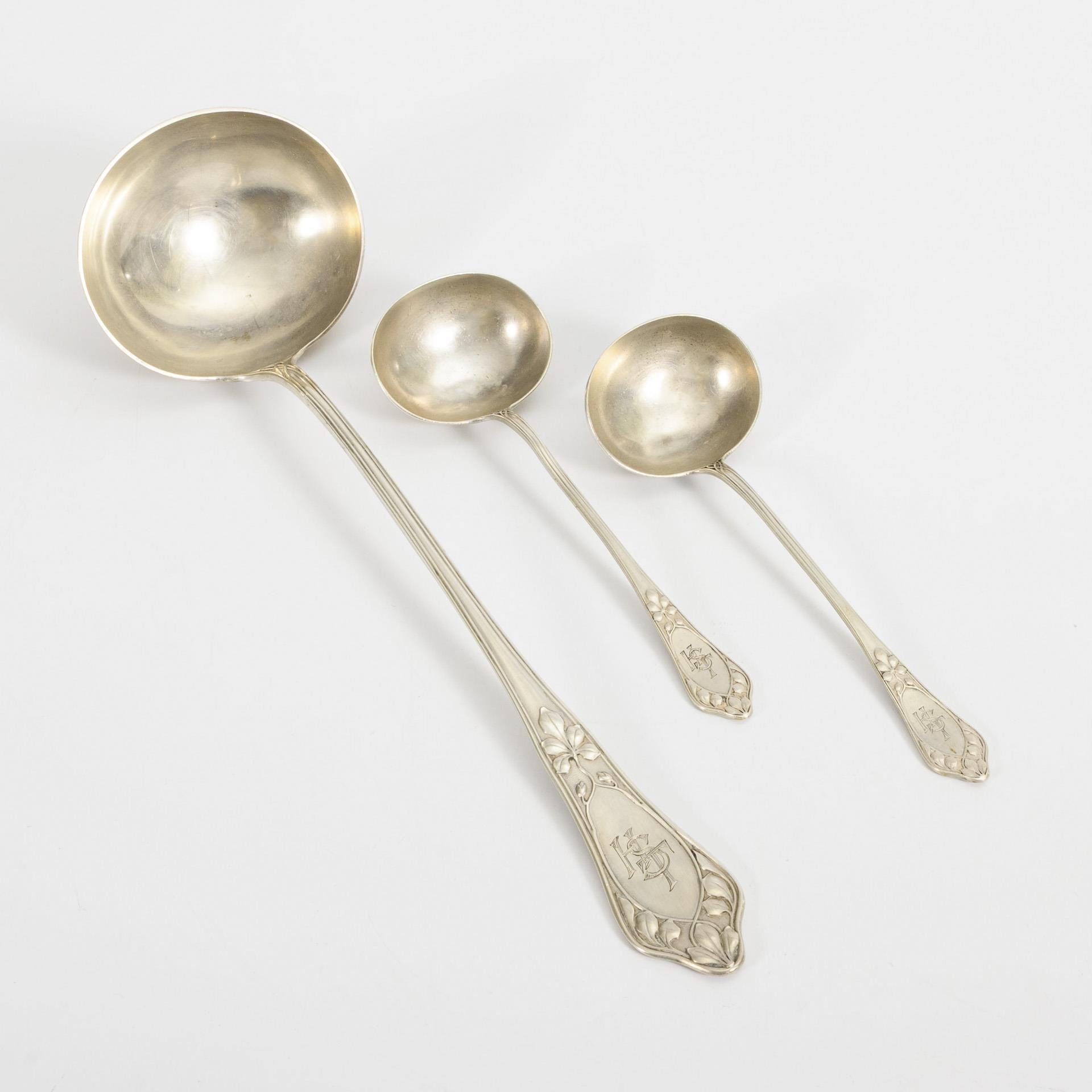 3 silberne Jugendstil-Kellen. Wilkens & Söhne, Bremen.