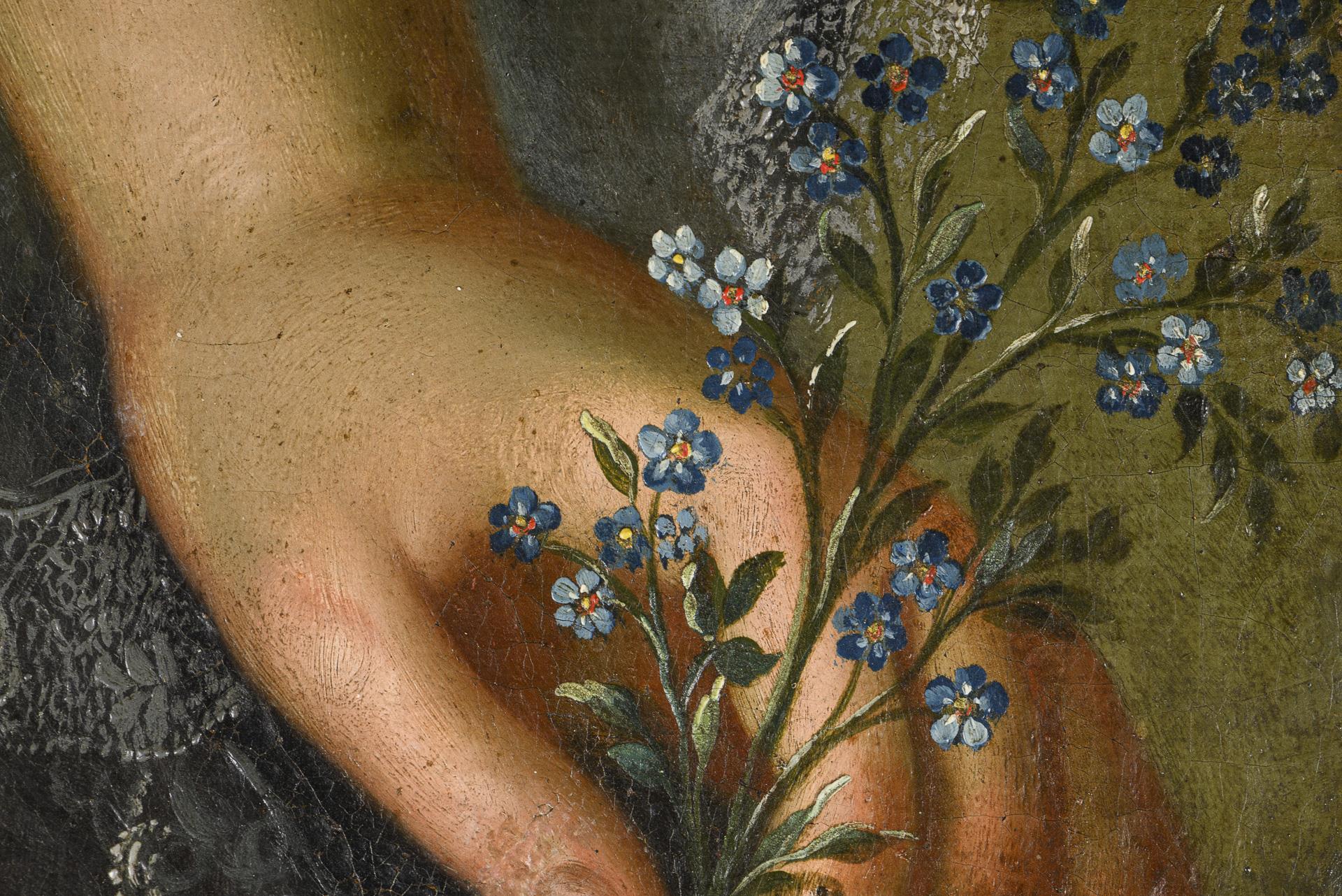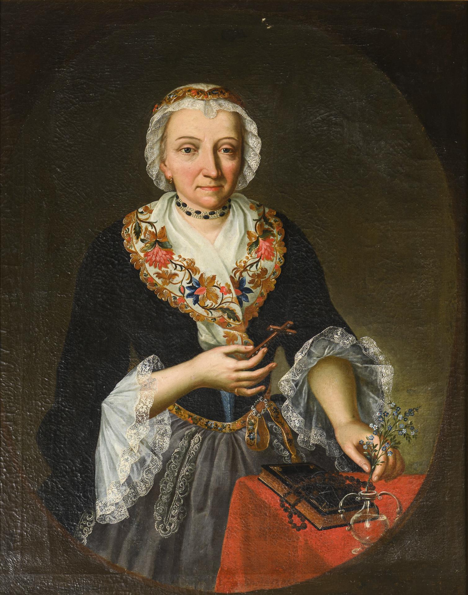 Qualitätvolle Bildnisse des Paares mit detailliert gemalter Kleidung und Schmuck, der Mann im Alter von 68 Jahren. Polixena Schöttl stammt aus dem Adelsgeschlecht Ritter von Schinnern. Anbei Familienstammbaum Ritter von Schinnern. Je restauriert mit Hinterklebungen.
