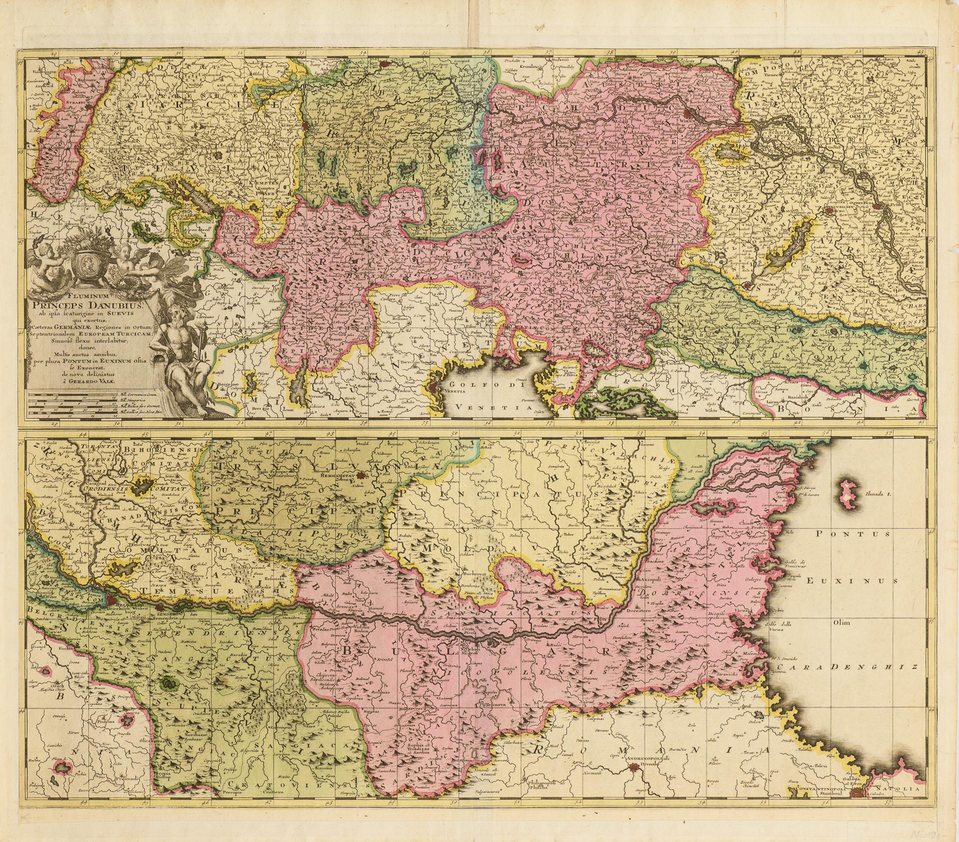 Kupferstich, koloriert. Amsterdam/Niederlande. Gerard Valck. Letztes Viertel 17. bis 1. Viertel 18. Jh.