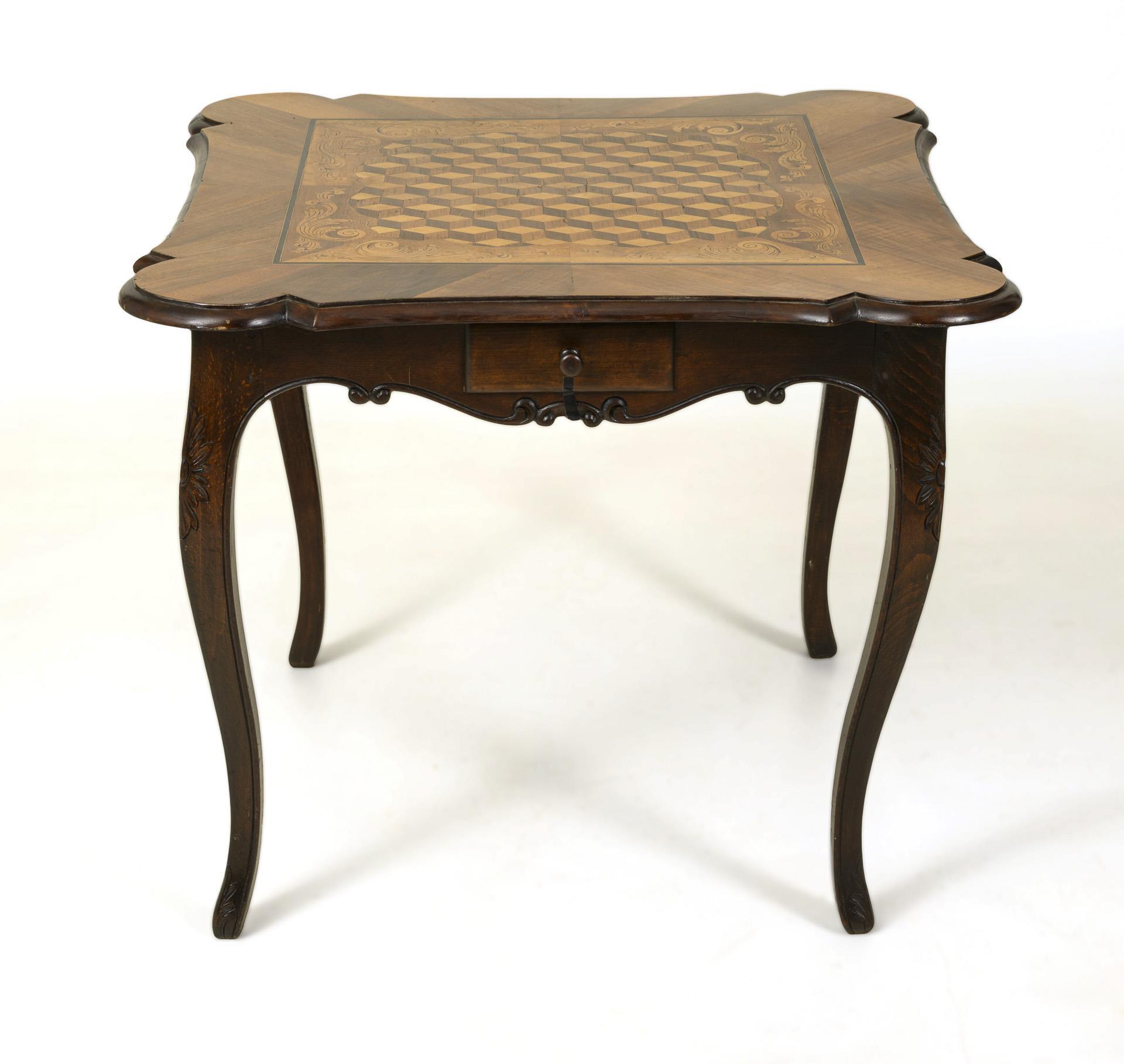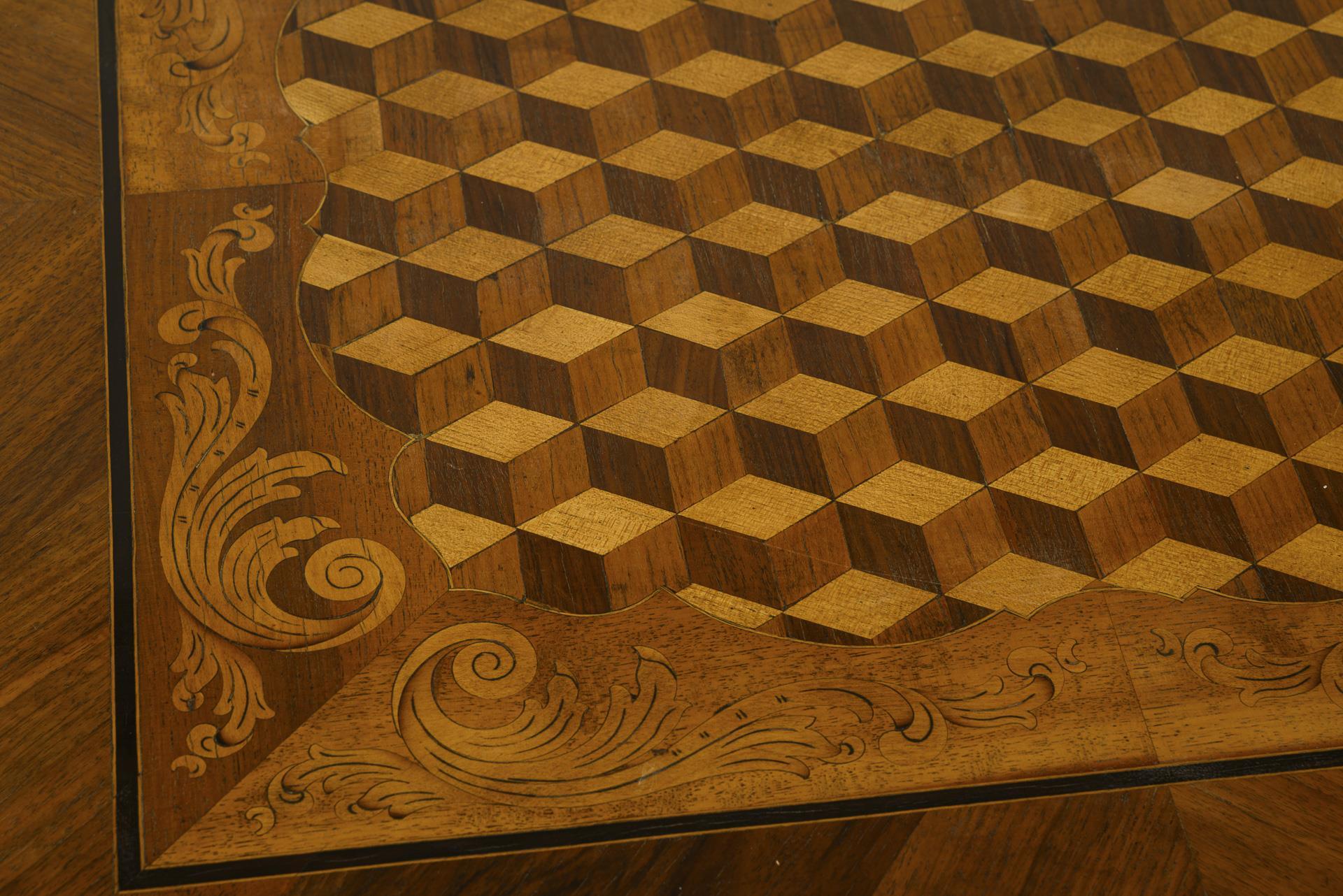 Neobarocker Spieltisch mit Würfelmarketerien.