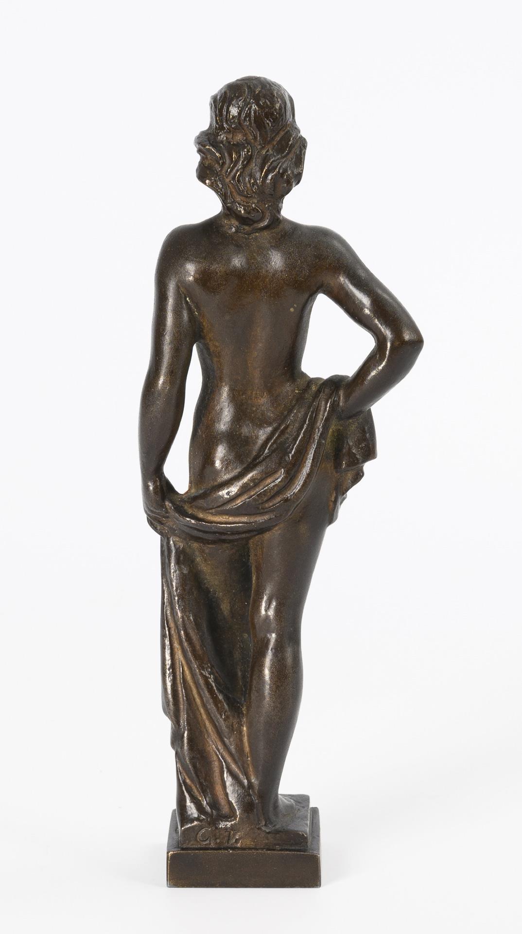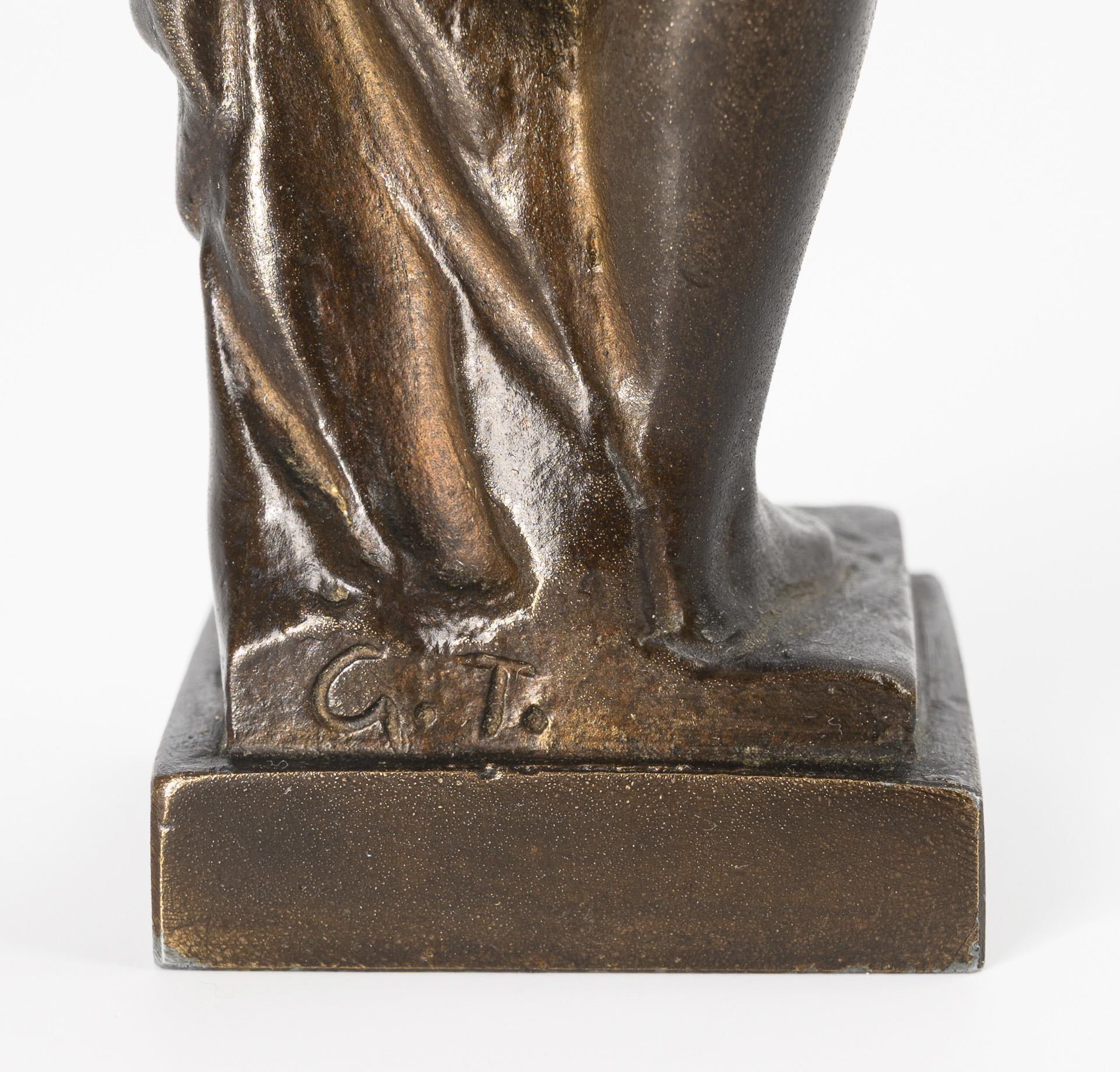 Metallguss bronzefarben patiniert. Bezeichnet mit Monogramm "G.T." oder "C.T.". H 24,5 cm. 0,9 kg.