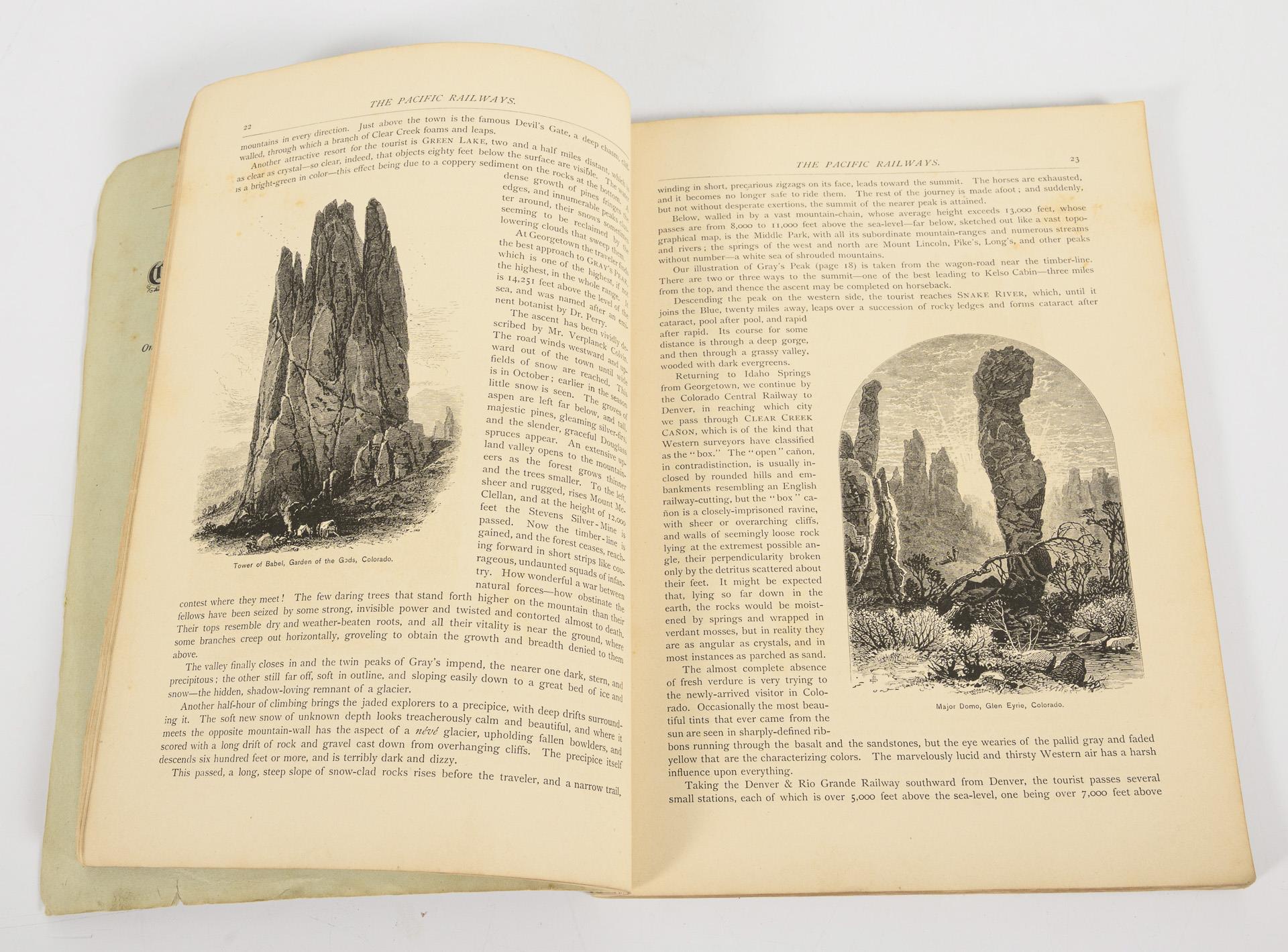 88, 16 Seiten mit vielen Holzstichen und einer Karte, in Broschurbindung. Außentitel: "The Pacific Railroads Illustrated". Altersgemäße Gebrauchsspuren.