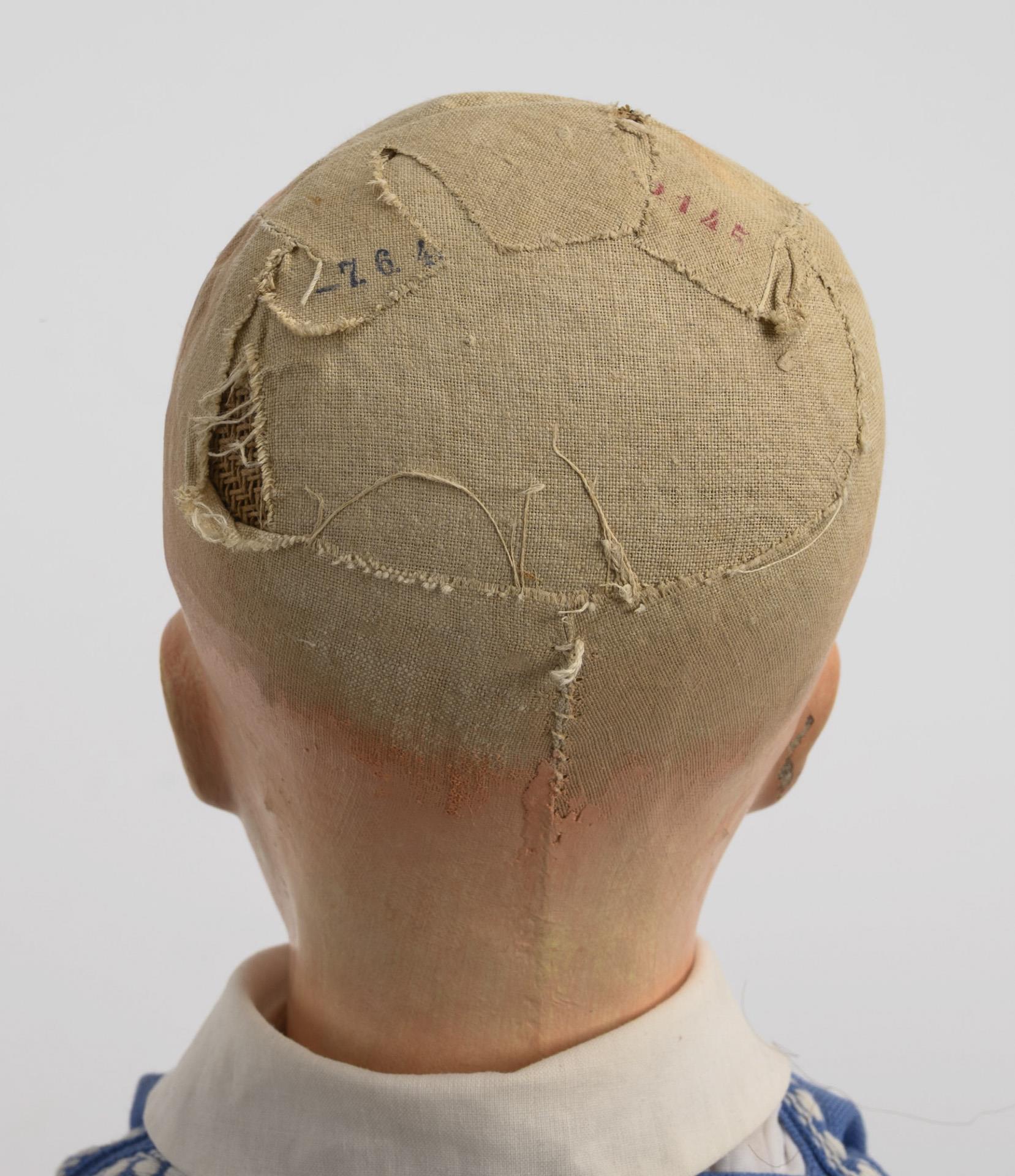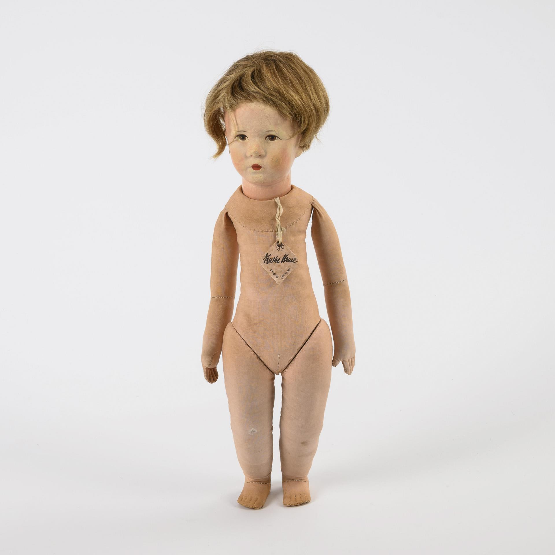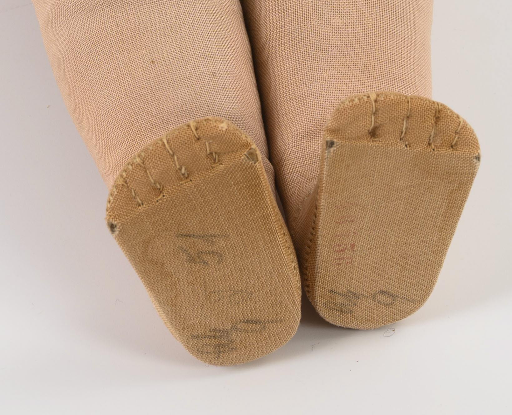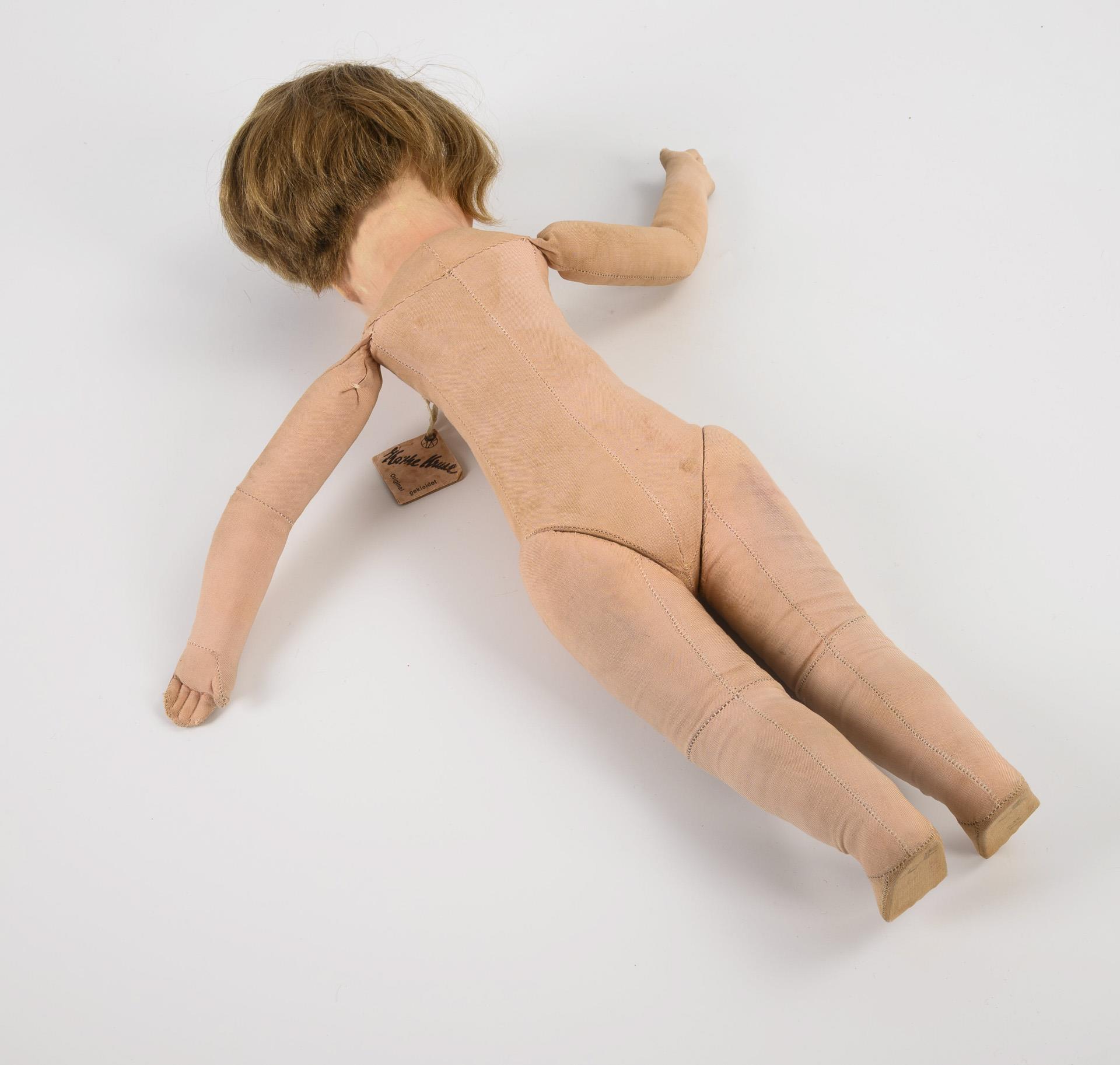 Originales Hängeetikett, unter dem linken Fuß roter Ziffernstempel. 1940er Jahre (unter der Perücke undeutlicher Datumsstempel).
