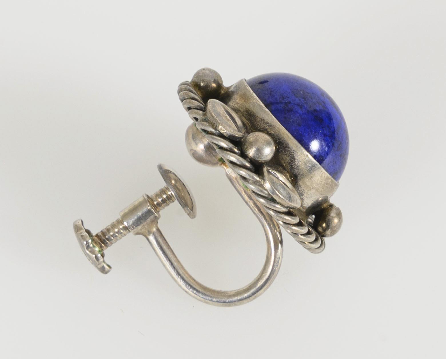 Runde Ohrschrauben der Marke Georg Jensen mit Lapis Lazuli-Cabochons.