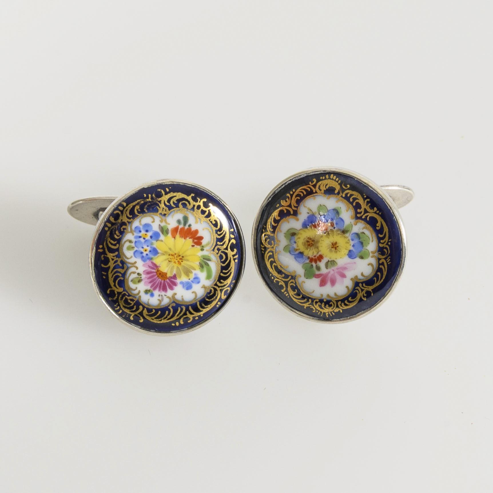 Manschettenknöpfe MEISSEN mit Blumenmalerei.