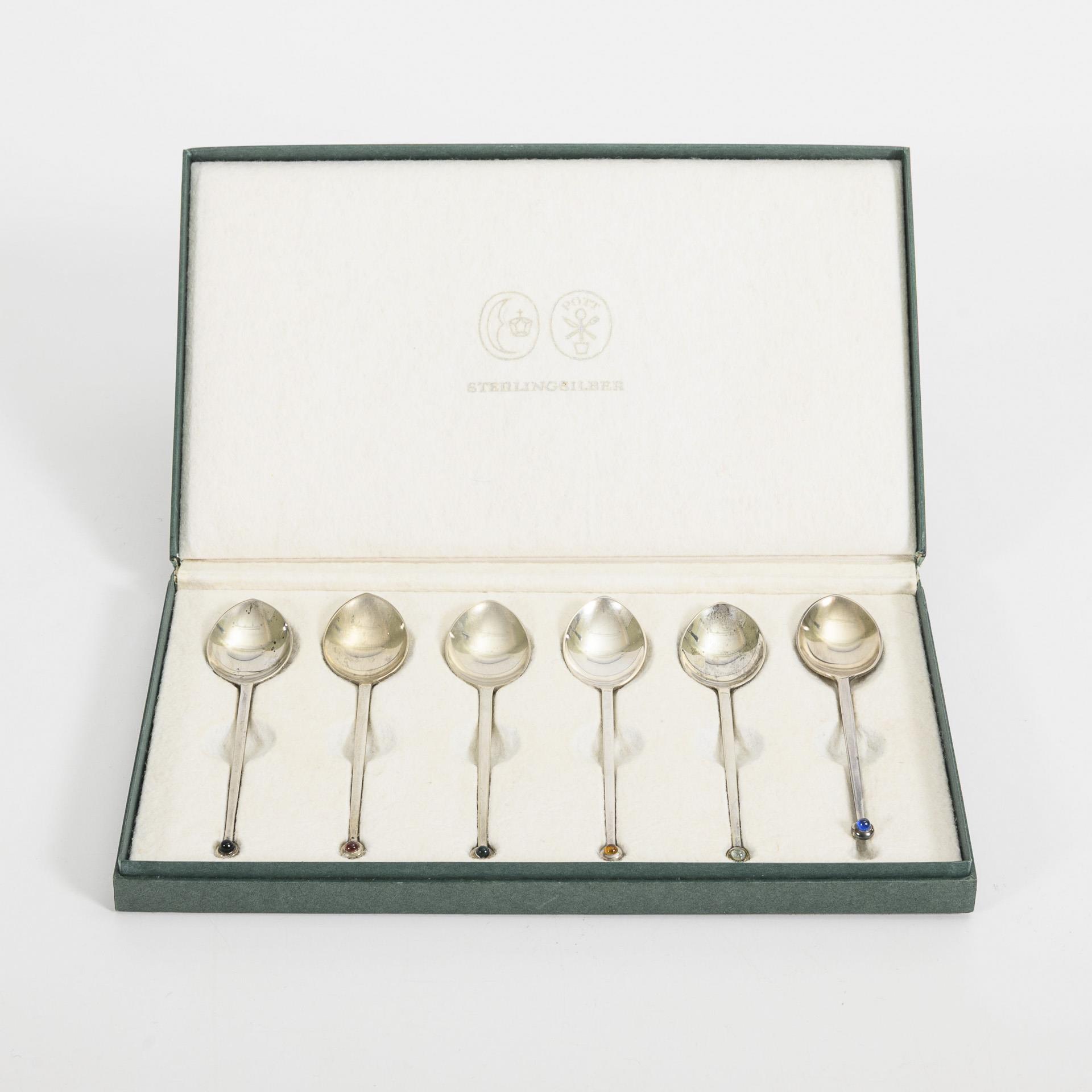 6 Design-Silberlöffel im Etui. Carl Hugo Pott, Solingen.
