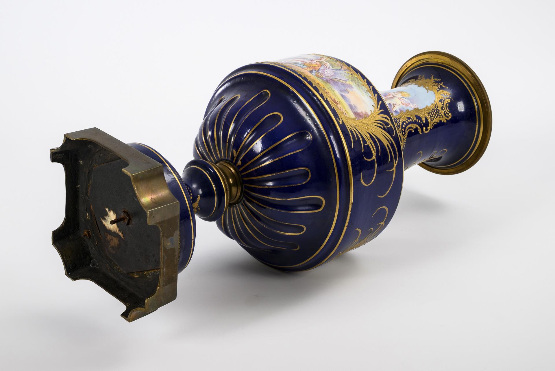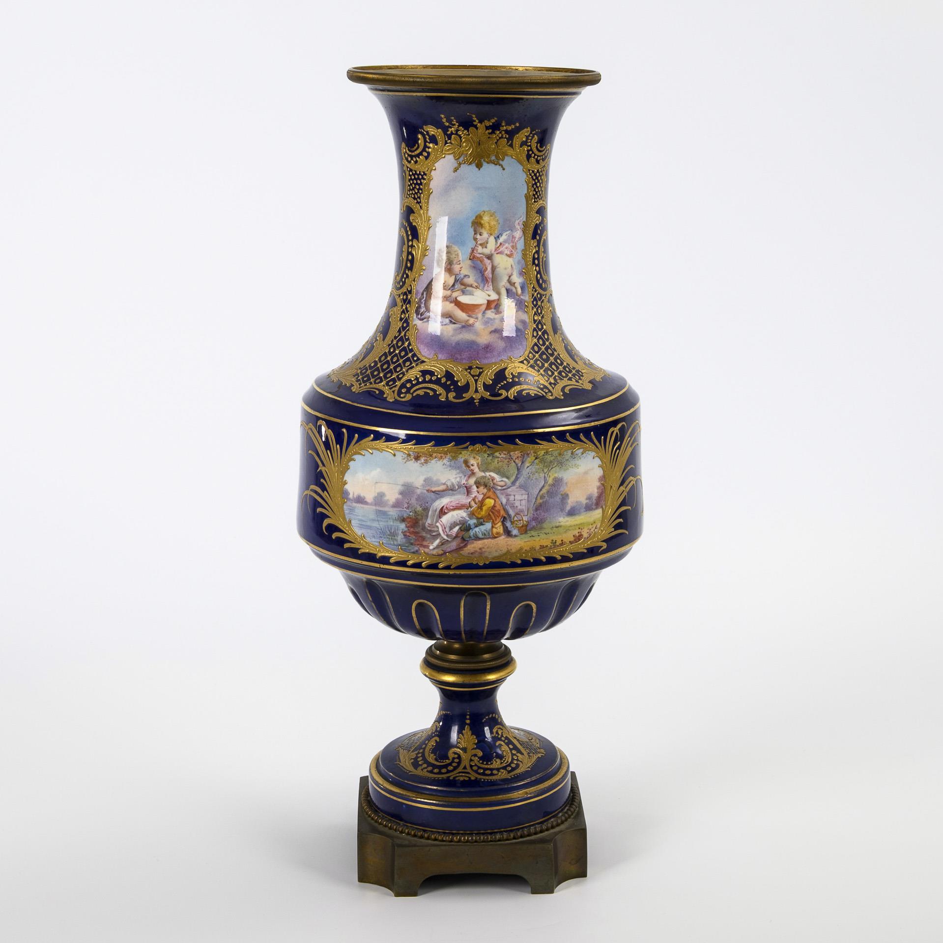 Vase mit Watteau-Malerei und Bronzemontierung.