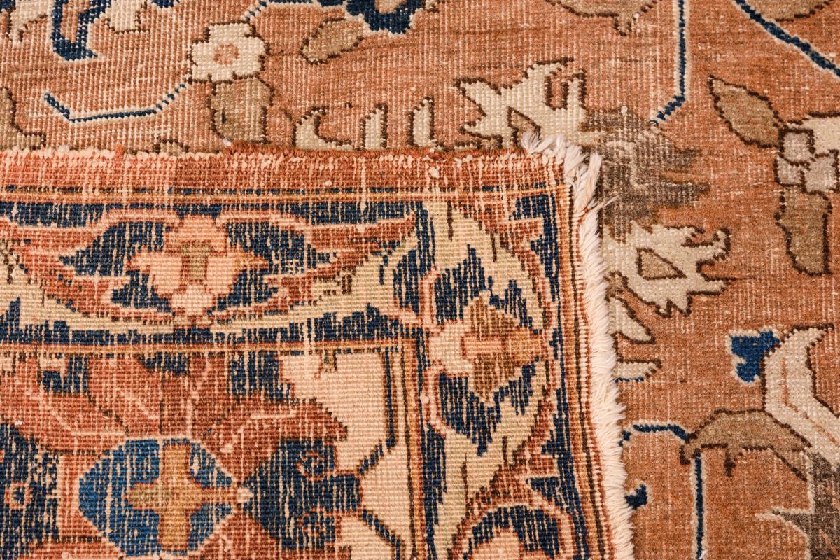 Wolle, handgeknüpft. Vorwiegend Creme-, Braun- und Blautöne. Ca. 287 x 396 cm.