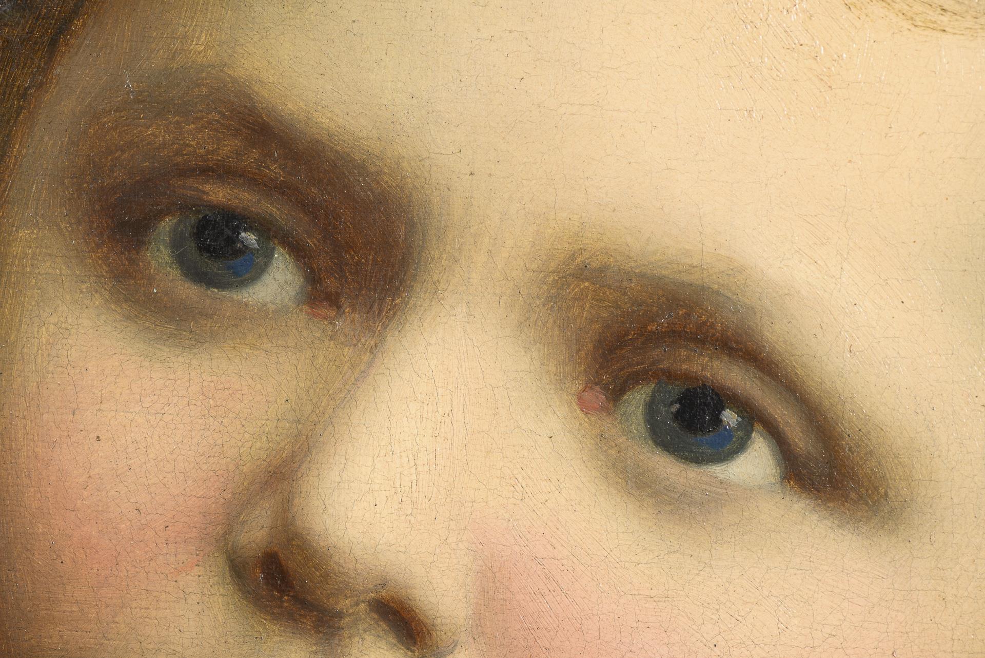 90 x 70 cm. Gerahmt : 105 x 86 cm (teils vergoldeter Stuckrahmen).