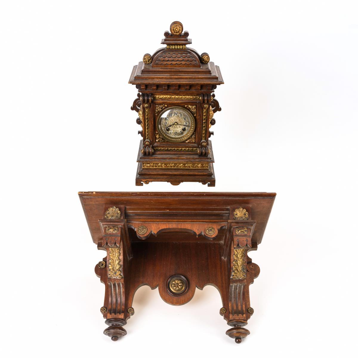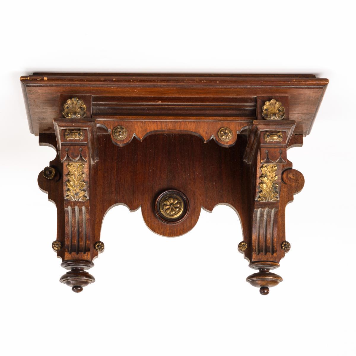 Drechselzier, florale Messingbeschläge. Dazu eine Gründerzeit-Konsole aus Mahagoni. Läuft.