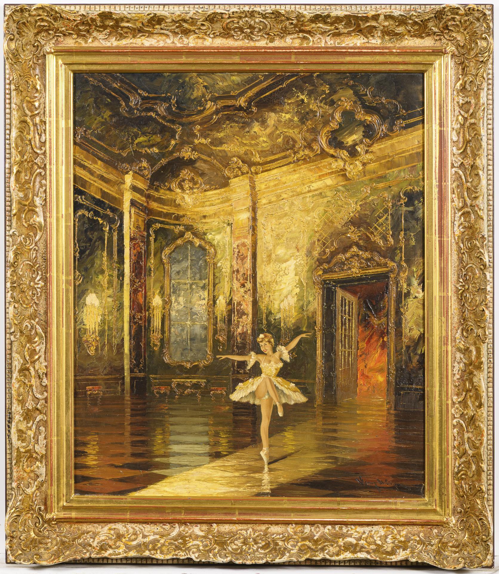 Undeutlich signiert: Tänzerin im Rokokosaal