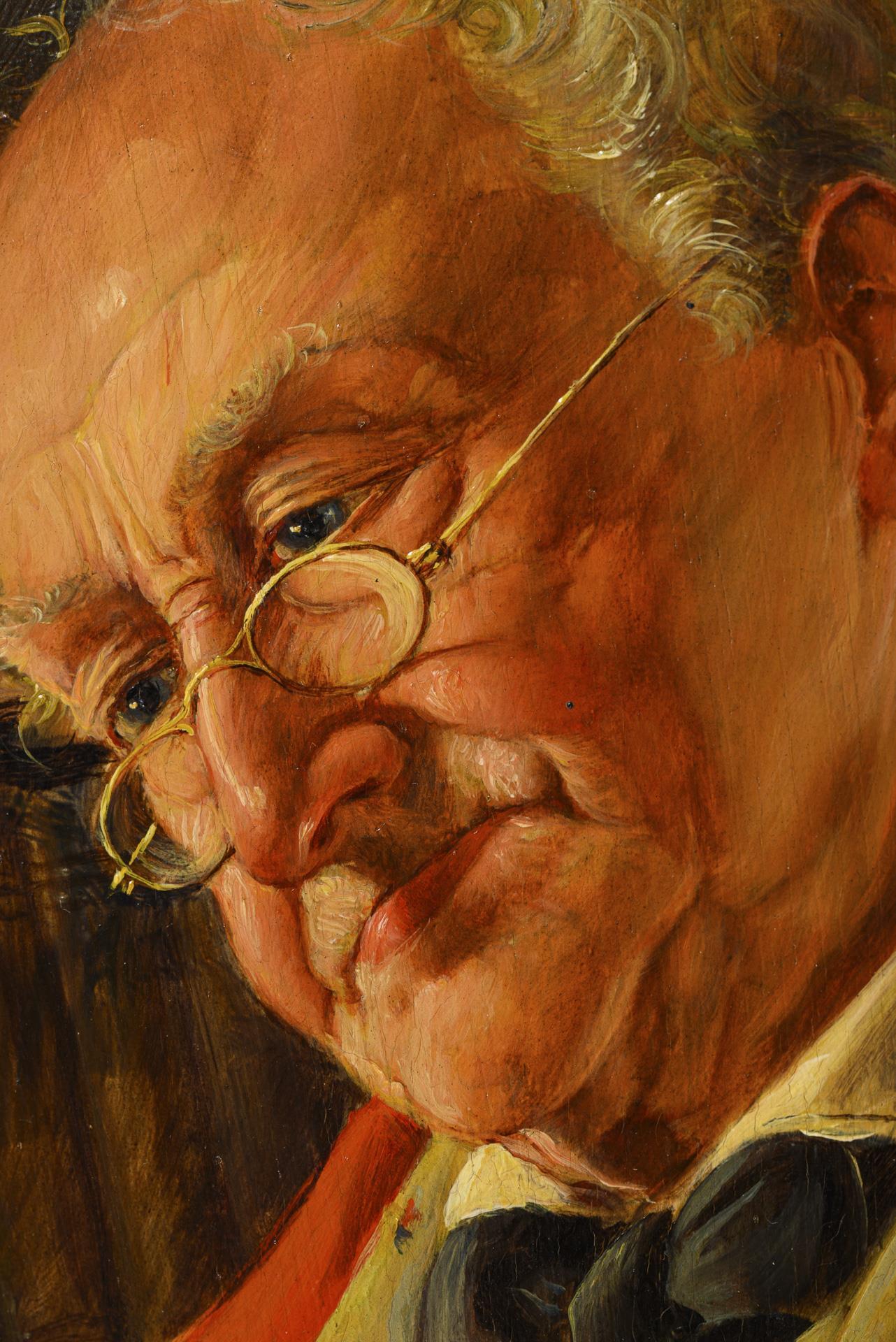 Älterer Mann mit Bleistift hinter dem Ohr beim Lesen eines Schriftstücks mit Wachssiegel.