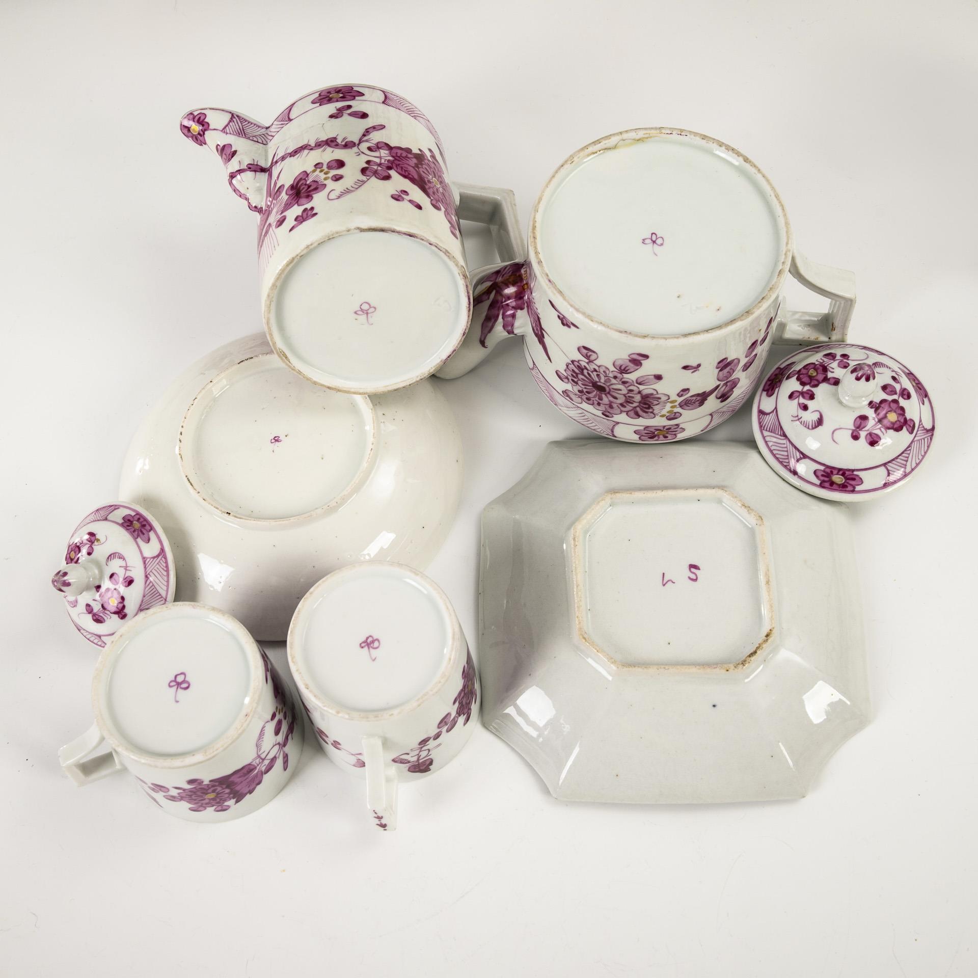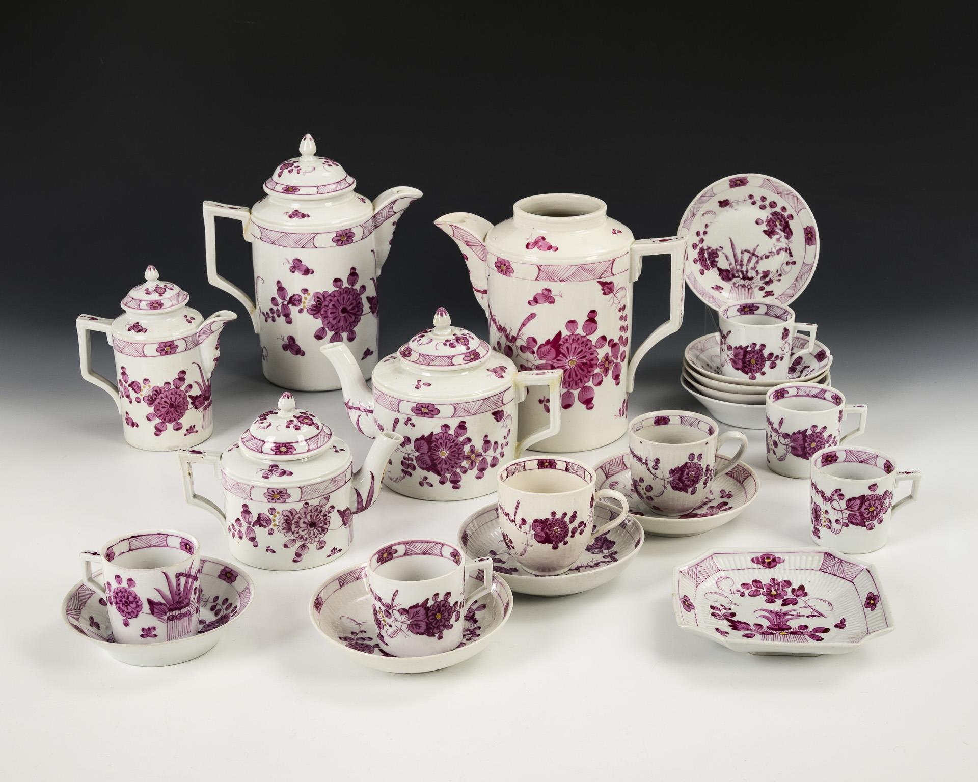 22 Teile eines Kaffee- und Teeservice mit Purpurmalerei. Limbach.