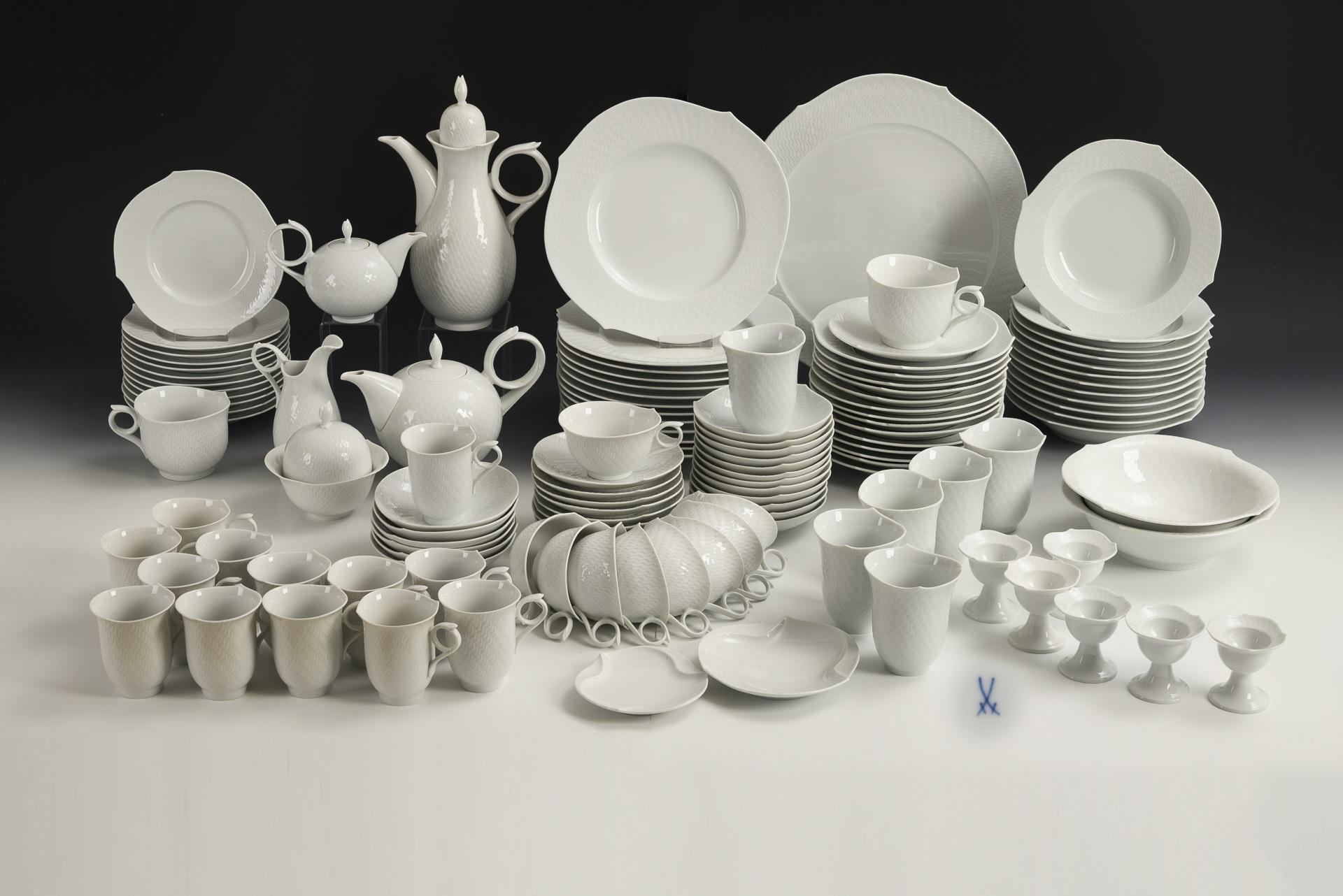 Umfangreiches Kaffee- und Speiseservice "Wellenspiel, Relief". Meissen.