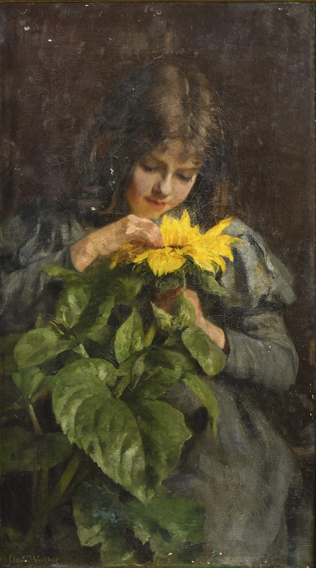 Porträt eines Mädchens beim Betrachten der Blüte einer Sonnenblume. Genannt in Boetticher Bd. II,2 S. 972, Nr. 11. Abgebildet in Bruckmanns Münchner Maler im 19. Jh. Bd. 4, S. 330. Farbabsplitterungen.