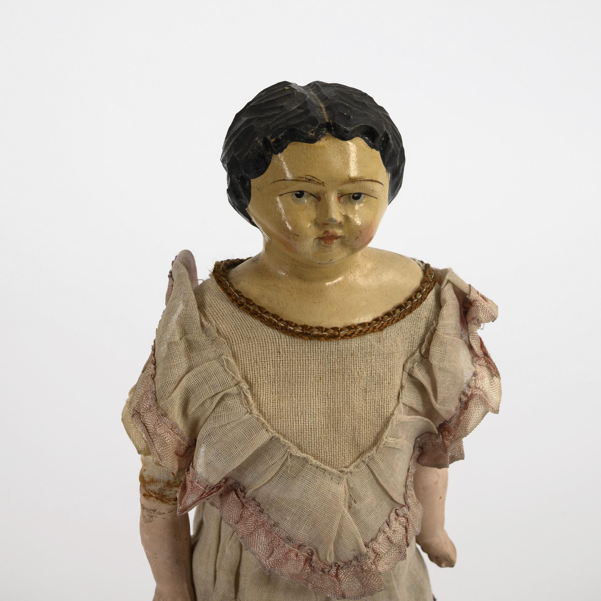 Puppe mit Brustkopf aus Holz.