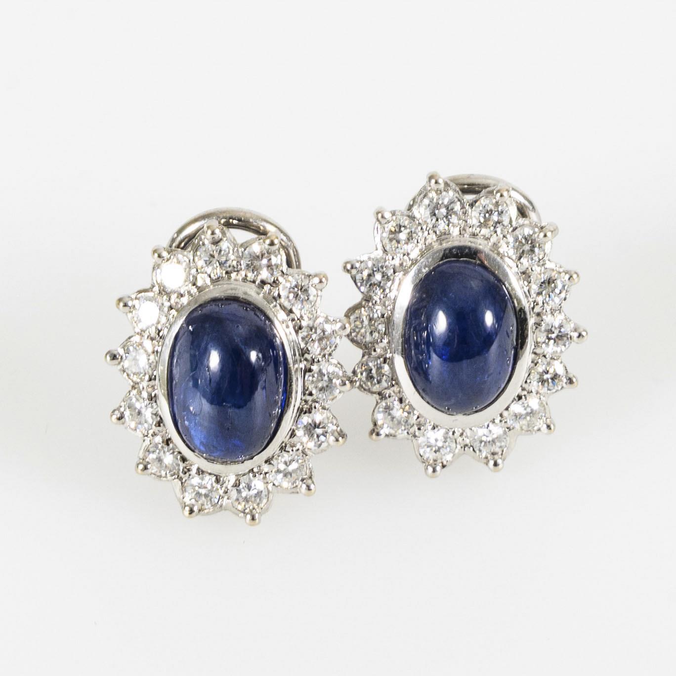 Clipstecker mit Saphir-Cabochons, umgeben von 28 Brillanten.