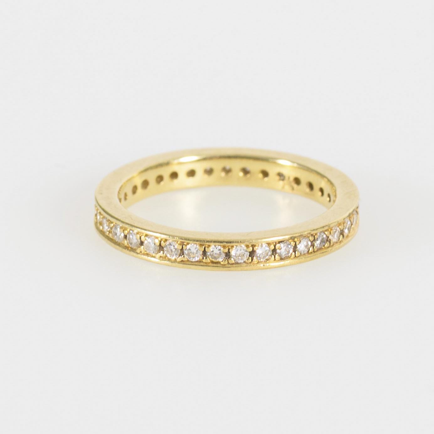 Klassischer Memory-Ring mit umläufigem, pavégefassten Besatz aus kleinen Brillanten.
