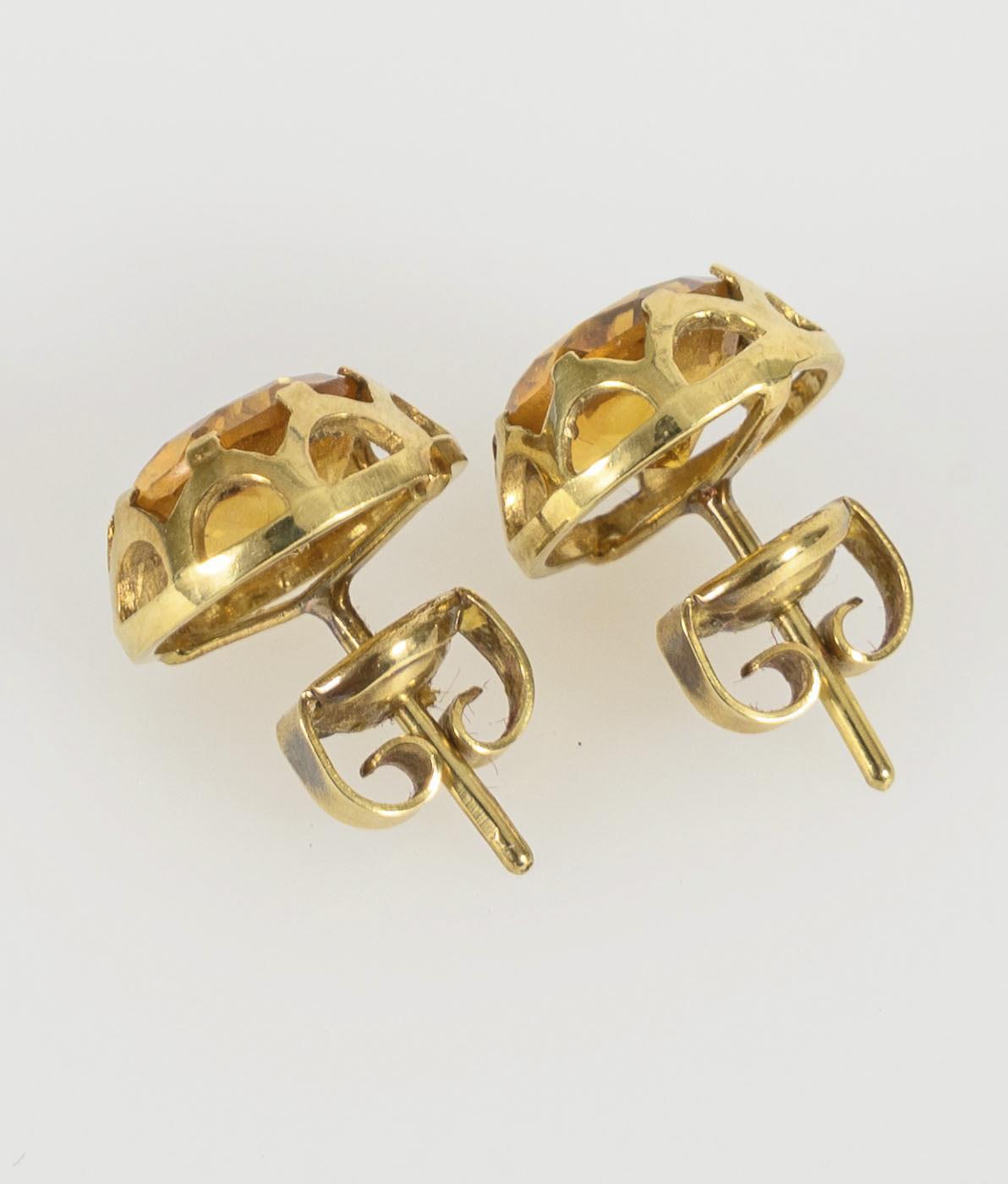 Ohrsteckerpaar mit rund-facettierten Citrinen in einer durchbrochen gearbeiteten Fassung.