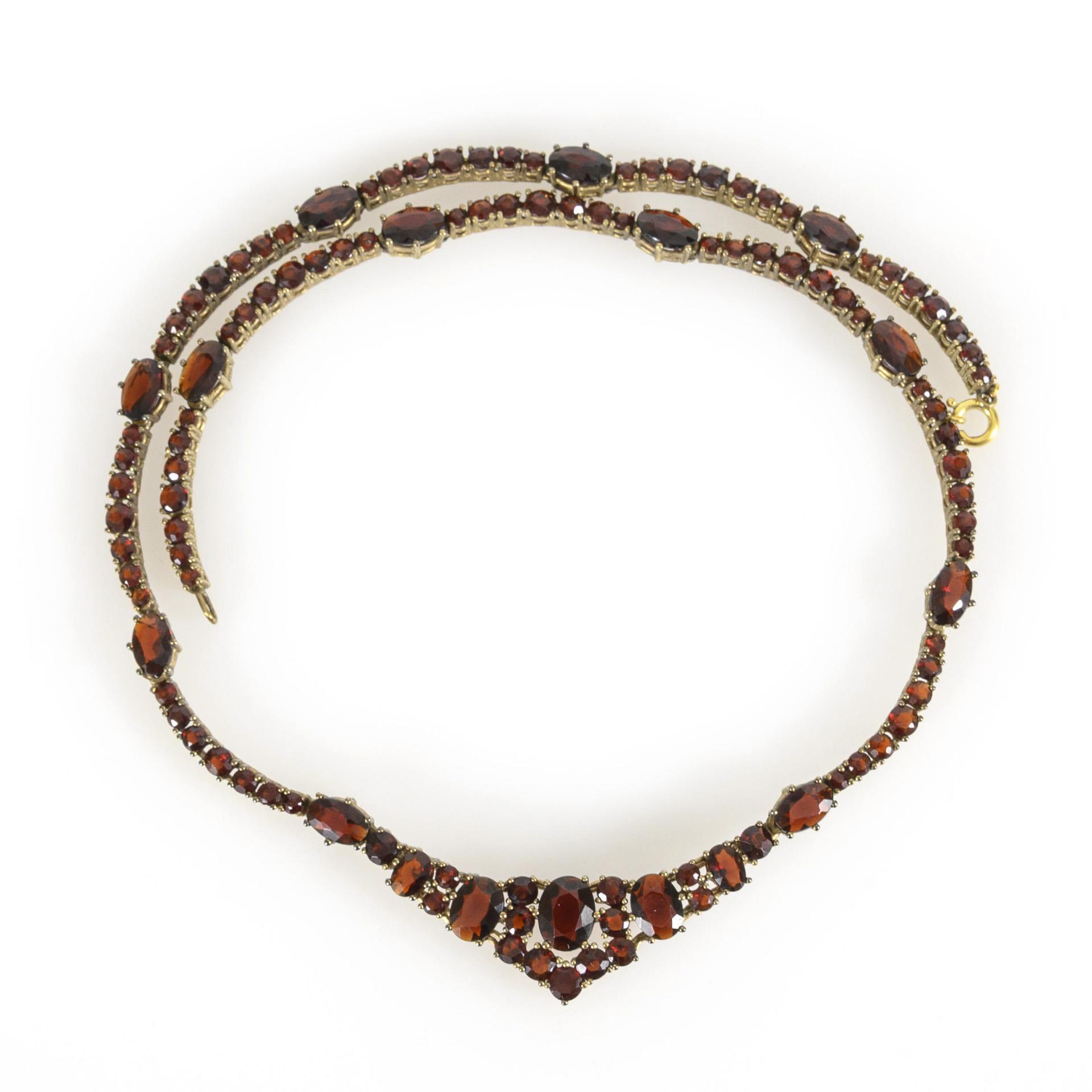 Vintage-Granatcollier mit umläufigem Steinbesatz und tiarenförmigem Mittelstück.