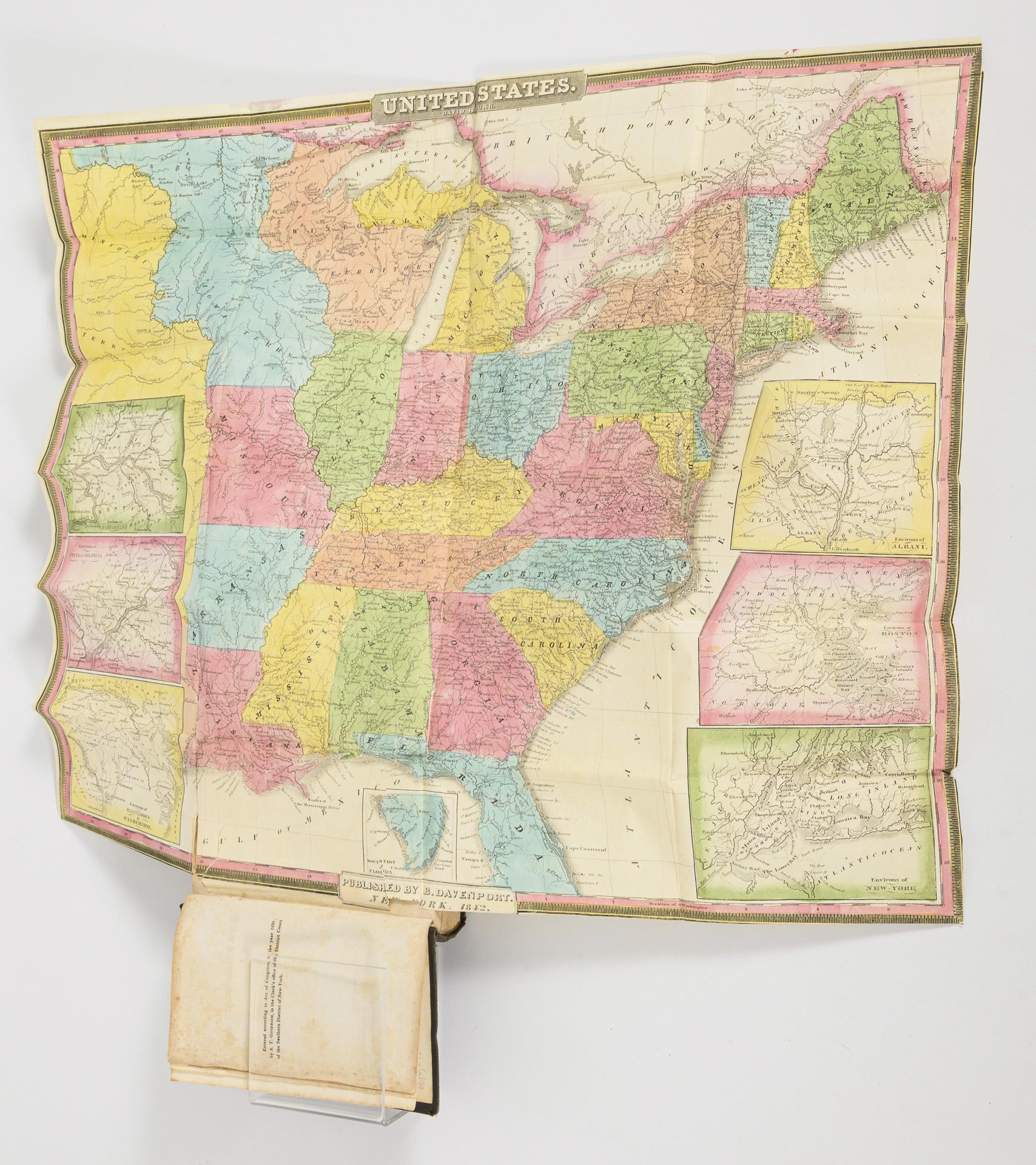 9, 506 Seiten, Karte der Vereinigten Staaten, New York City, Niagara Falls, Ballston and Saratoga springs, Boston, Philadelphia, Baltimore und Annapolis, District of Columbia und Potomac River, Charleston und zwei Stahlstiche. (vermutlich fehlen zwei Abbildungen und zwei Karten. Gebrauchsspuren, Block etwas stockfleckig.