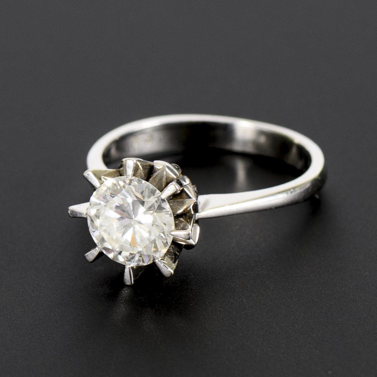 Weißgold 750 gestempelt. Ringgröße 52, Durchmesser des Brillanten (in der Fassung gemessen) 7,34 mm. 4,0 g.