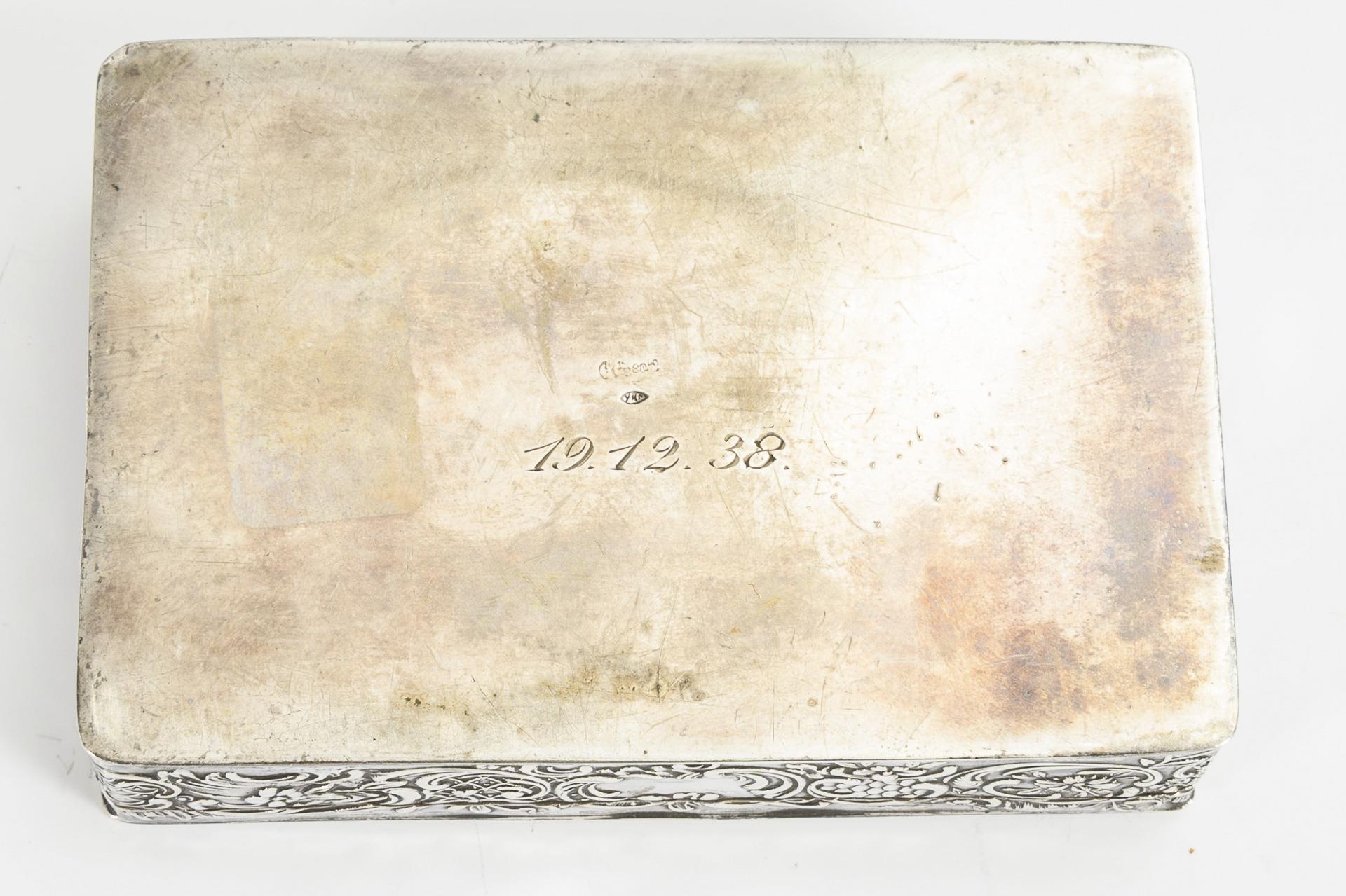 Reliefierte Silberdose. Johann S. Kurz & Co. Hanau.
